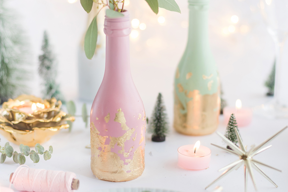 Upcycling-Ideen: Wie du leere Flaschen in eine wunderschöne neue Weihnachtsdeko verwandelst. Advents-Sekt-Brunch klingt doch nach einer Idee, oder?! Dabei gibt es nicht nur Sekt zum Frühstück, sondern einige leere Sektflaschen dürfen auch noch als edle Tischdeko dienen. Und damit zeige ich euch wie ihr die wunderhübschen weiß lackierten Flaschen total stilvoll upcyclen und als DIY-Vase für eure Tischdeko nutzen könnt.