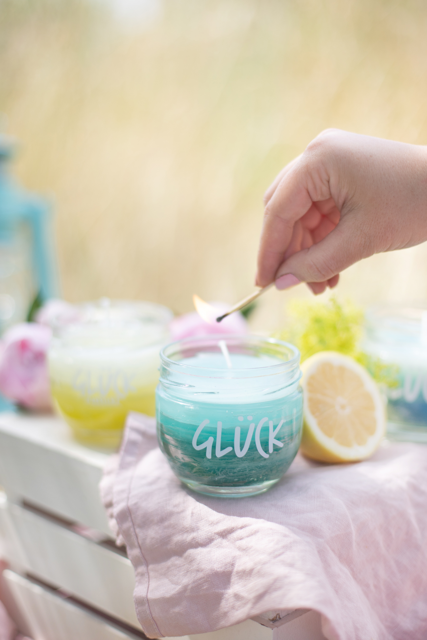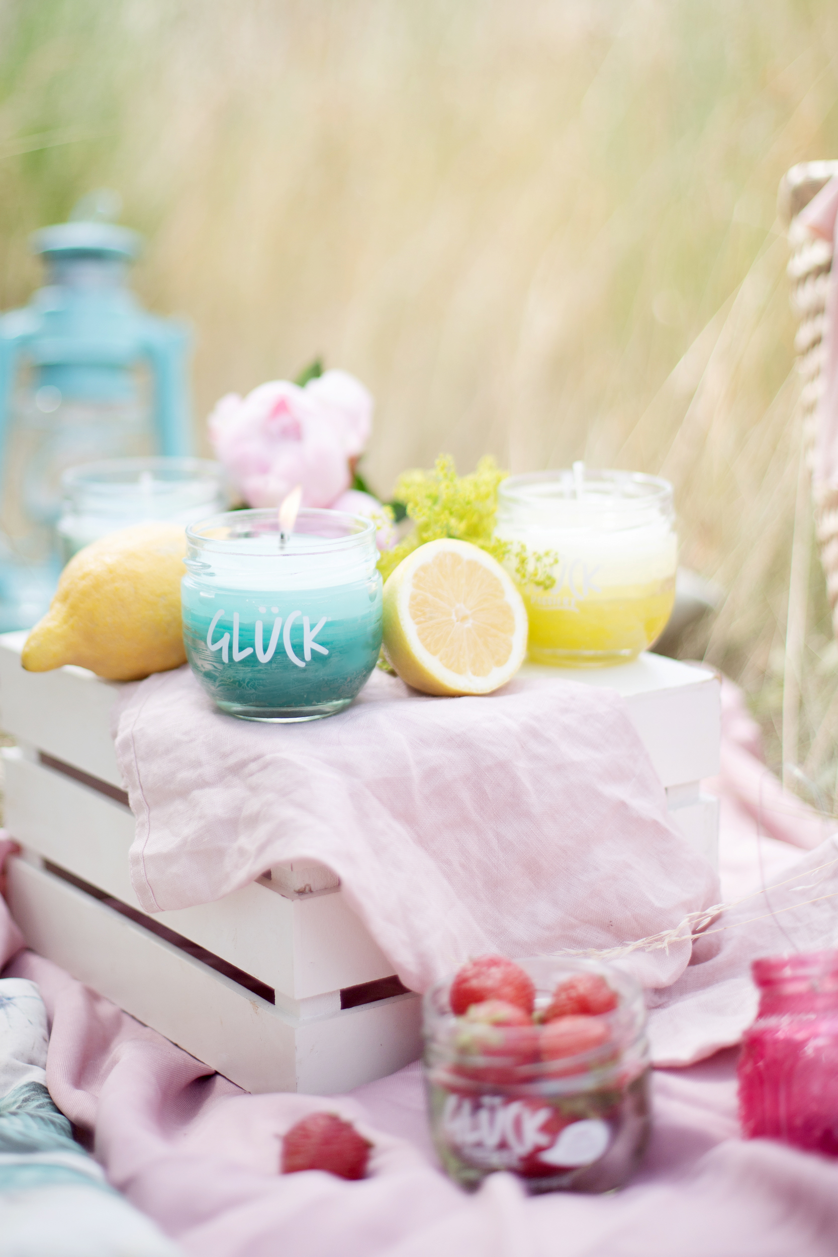 Passend zum Juli-Thema „Sommerpicknick“ habe ich mit unserem Partner GLÜCK eine schöne und praktische Idee für das Sommerpicknick umgesetzt: DIY Citronella-Kerzen mit Farbverlauf, die gegen Mücken helfen. Diese Kerzen habe ich mit den traumhaft schönen Gläsern der GLÜCK Marmeladen umgestzt.