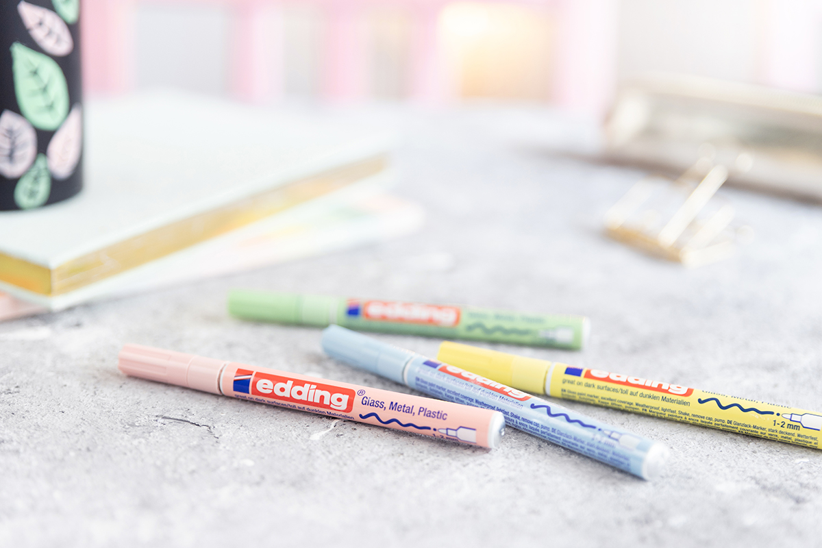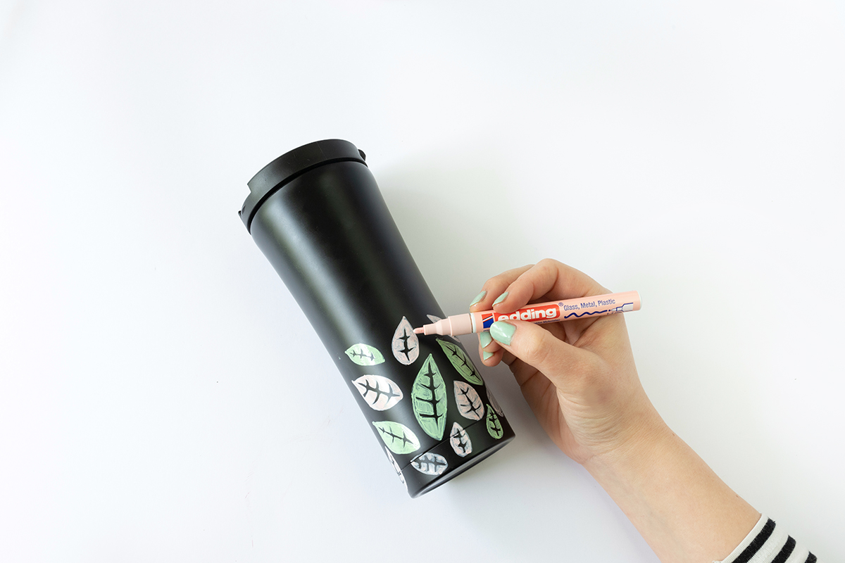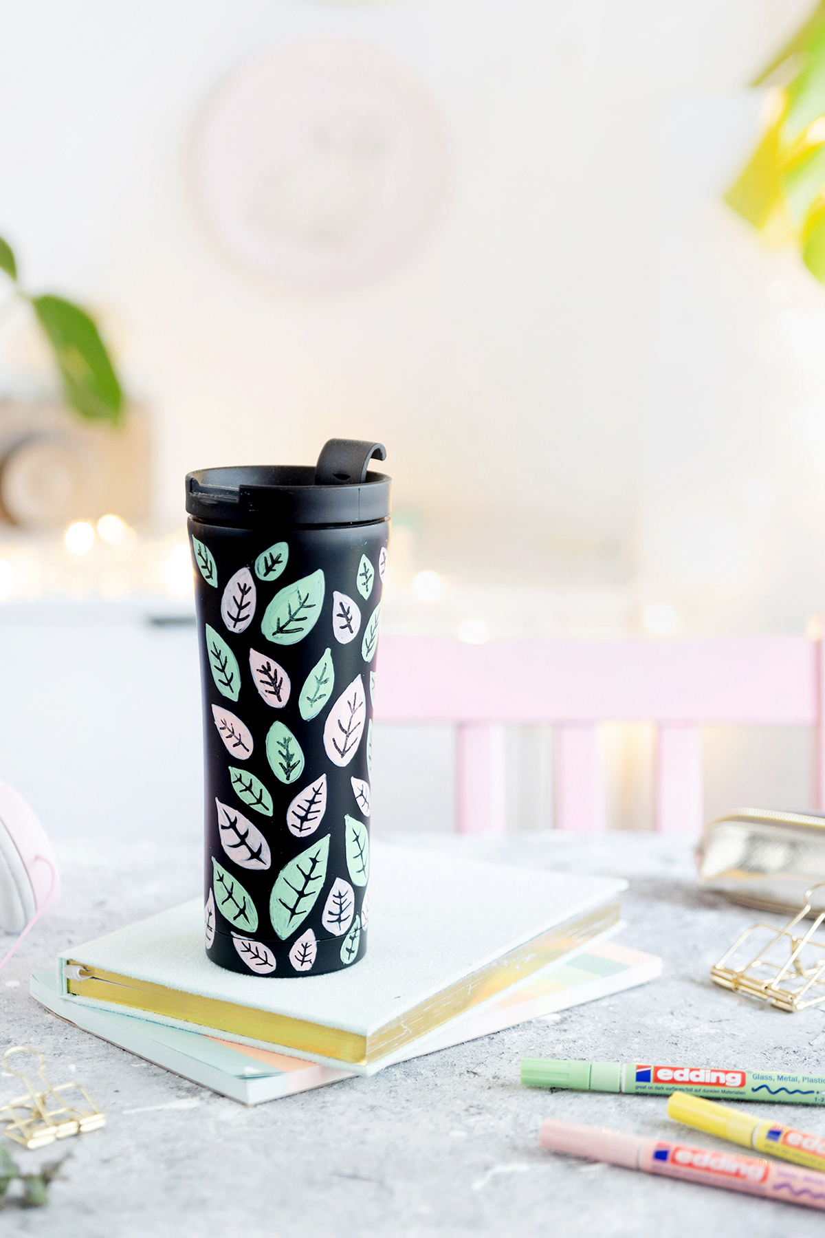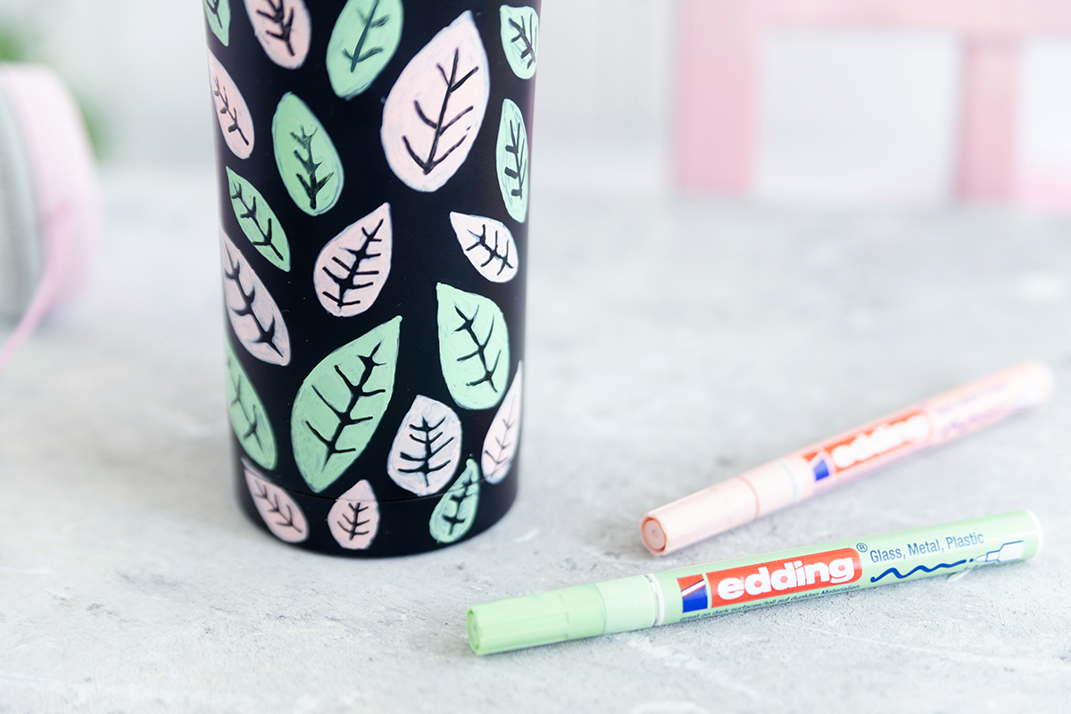 Bei neuen Stiften in Pastellfarben werde ich direkt hellhörig: Die muss ich haben! Primärfarben sind nichts für mich. Es darf alles schön entsättigt und pastellig sein. Mit den neuen Glanzlackmarkern von edding in Pastellfarben zeige ich euch, wie ihr einen Coffee-to-go Becher bemalen könnt – mit einem super schönen Blättermuster in Mint und Rosé. Die perfekte Farbkombi, finde ich!