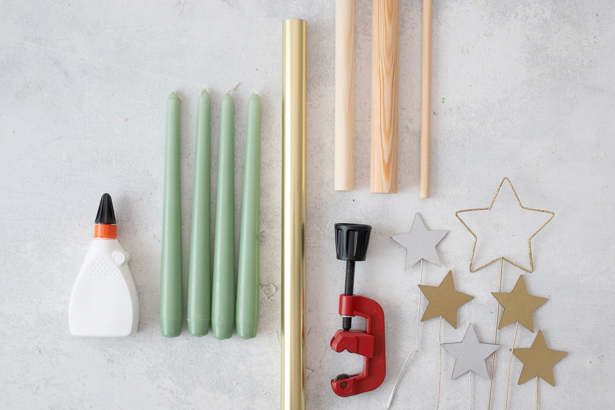 - 4 Kerzenhalter – oder wie ich: alte Gardinenstange mit Durchmesser von 2,5 cm + Rohrschneider