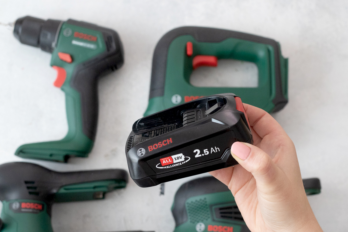 Bei so einem Projekt, bei dem mehrere Tools zum Einsatz kommen, ist das 18V POWER FOR ALL Akkusystem so praktisch: Ich muss vorher keine drei Akkus aufladen, sondern stecke den Akku immer auf das Tool, das ich als nächstes brauche.