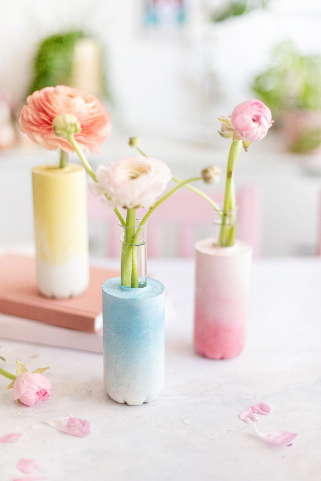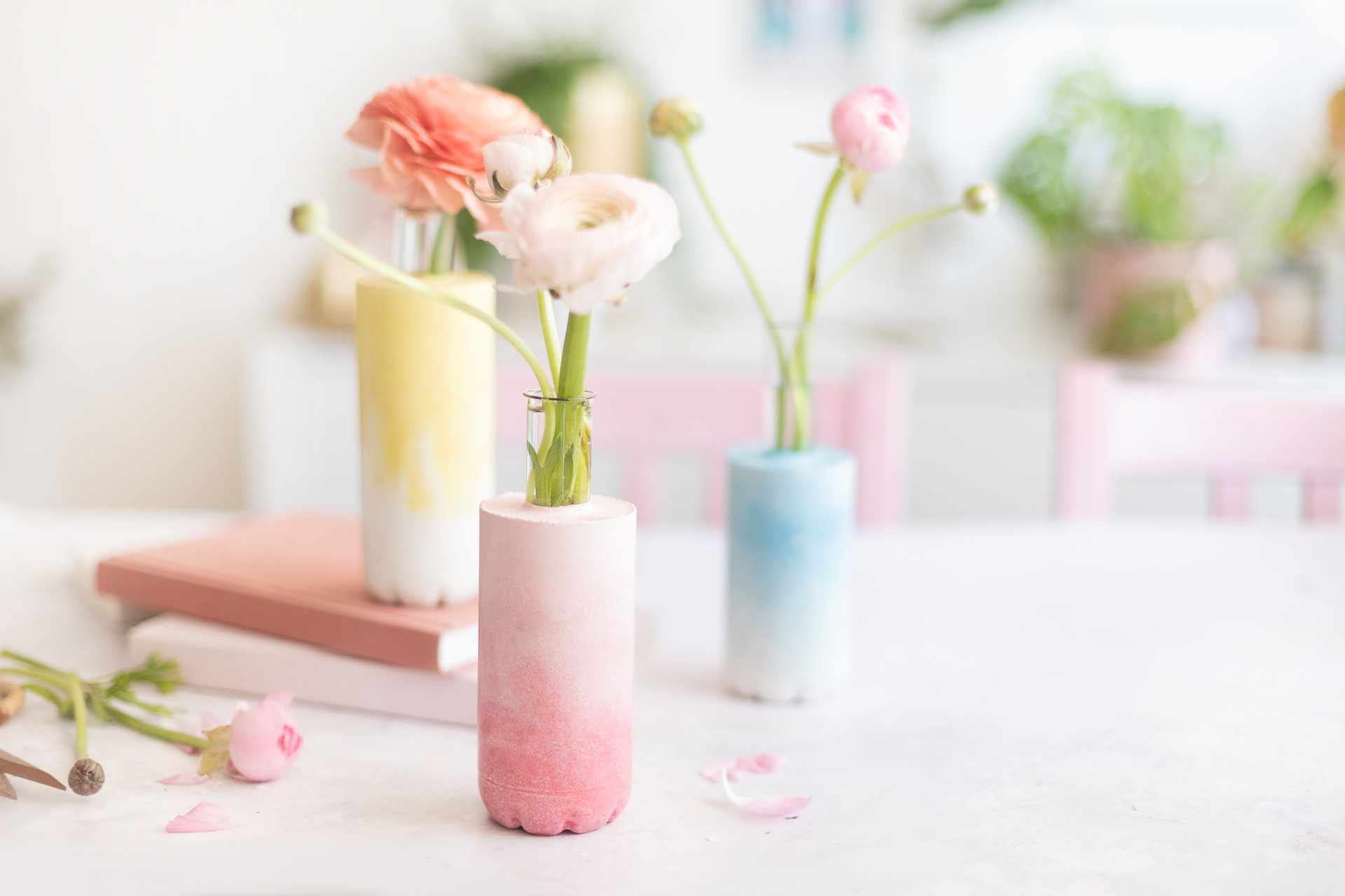 DIY Beton-Vasen mit Farbverlauf basteln