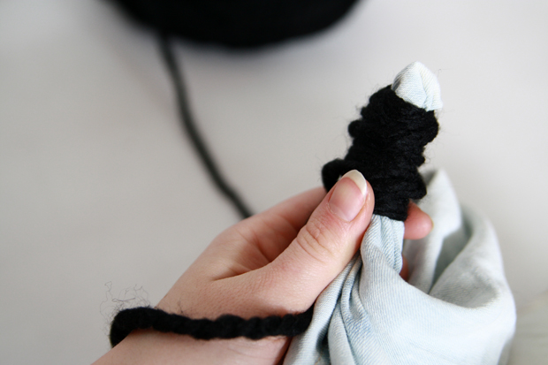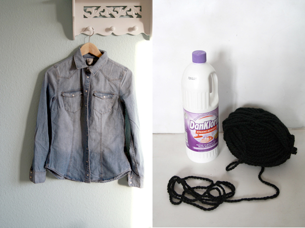 Warum Wolle und keine Gummis o.ä.? Ganz einfach, die Wolle nimmt den Chlorreiniger auf und an den Stellen, die umwickelt sind, ist der Stoff am Ende noch heller. Ihr könnt natürlich auch Gummibänder benutzen, wie ihr mögt!