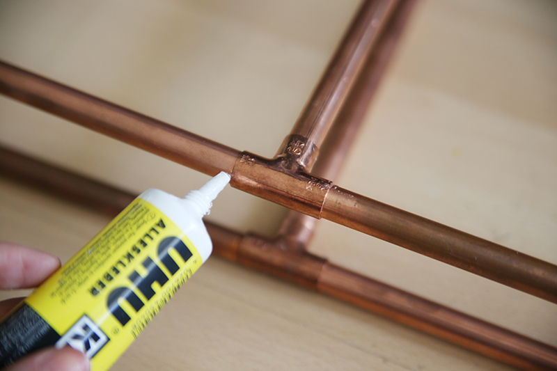 2. Verbindet die Teile mit Hilfe von Alles- oder Kraftkleber mit den Fittings. So wird das Regal schön stabil.