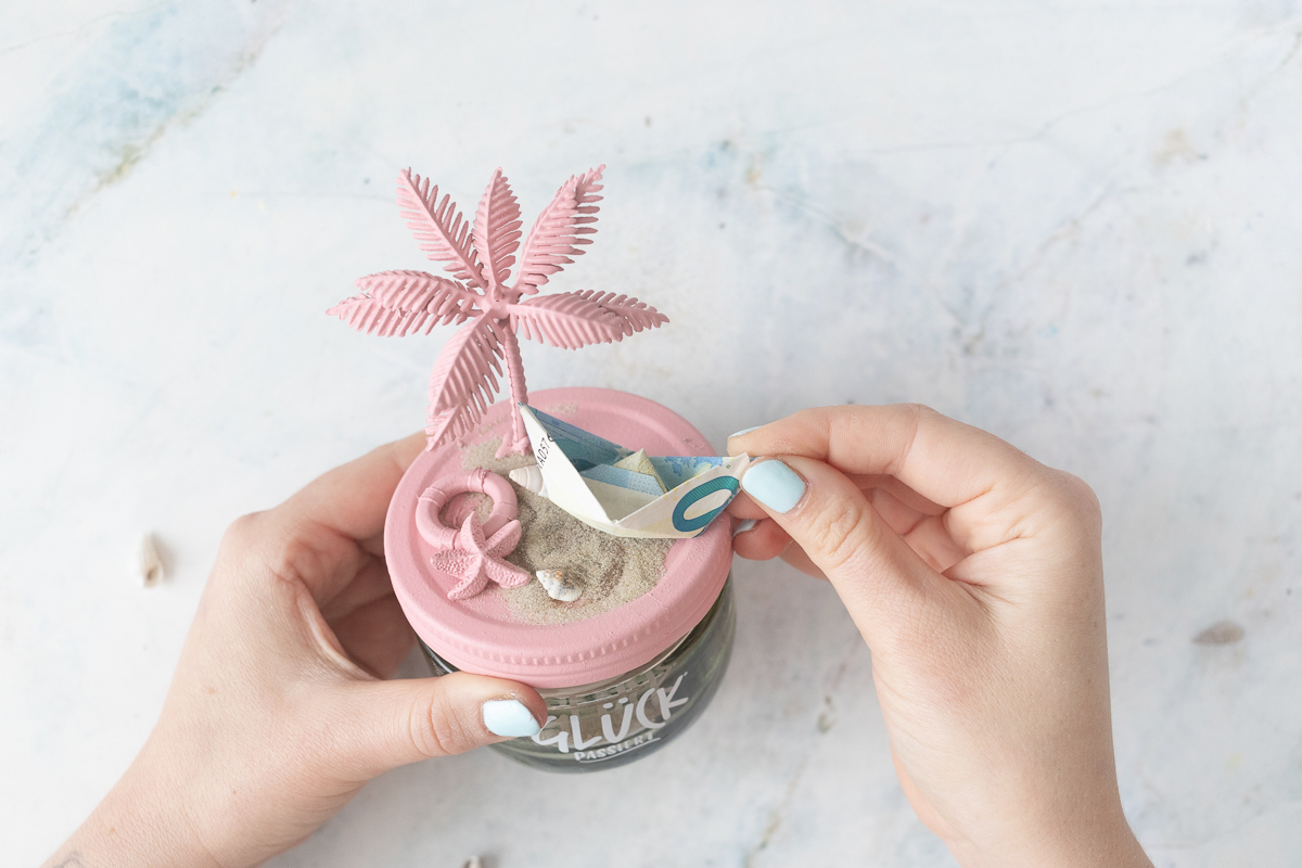 Damit ist dein Geldgeschenk für den Urlaub im Marmeladenglas fertig, juhu!