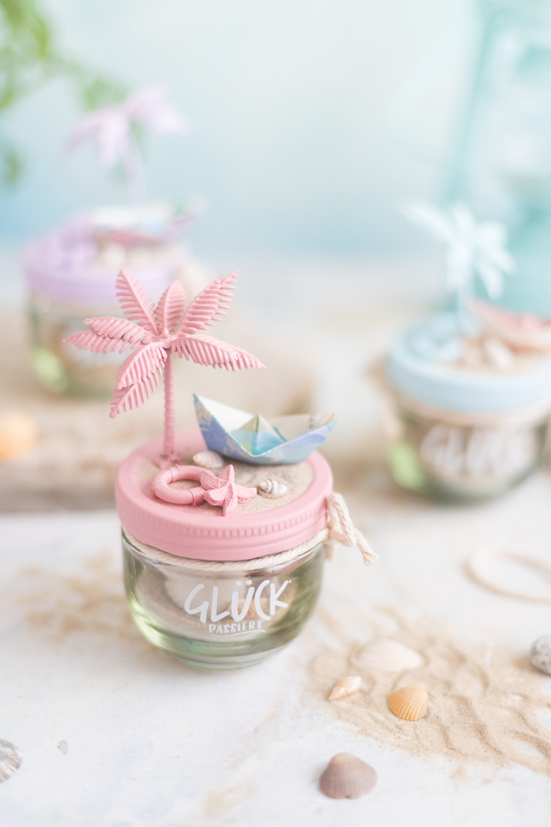 Passend zu unserem heutigen Thema habe ich ein süßes Geldgeschenk für den Urlaub im Marmeladenglas selbst gemacht. Geldgeschenke verpacken ist ja immer so eine Sache: im Kuvert sind sie ziemlich langweilig. Deshalb habe ich für meine Idee ein leeres Marmeladenglas genutzt und das zum Thema „Urlaub“ dekoriert – passend dazu zeig ich dir, wie du einen Geldschein wie ein Boot falten kannst. Fertig ist das Geldgeschenk für die nächste Reise!