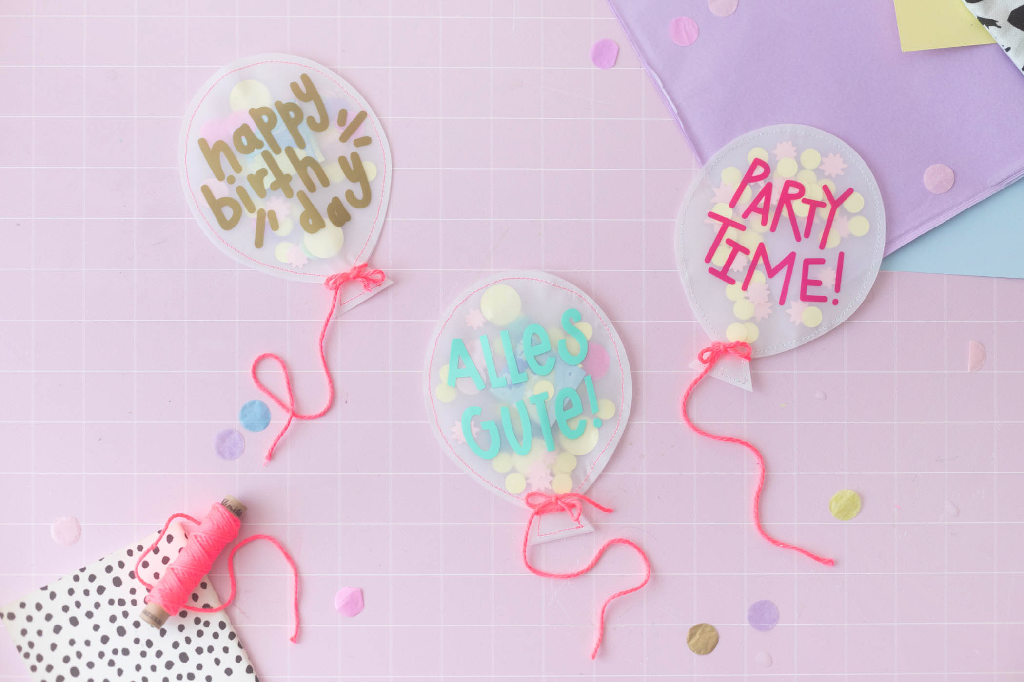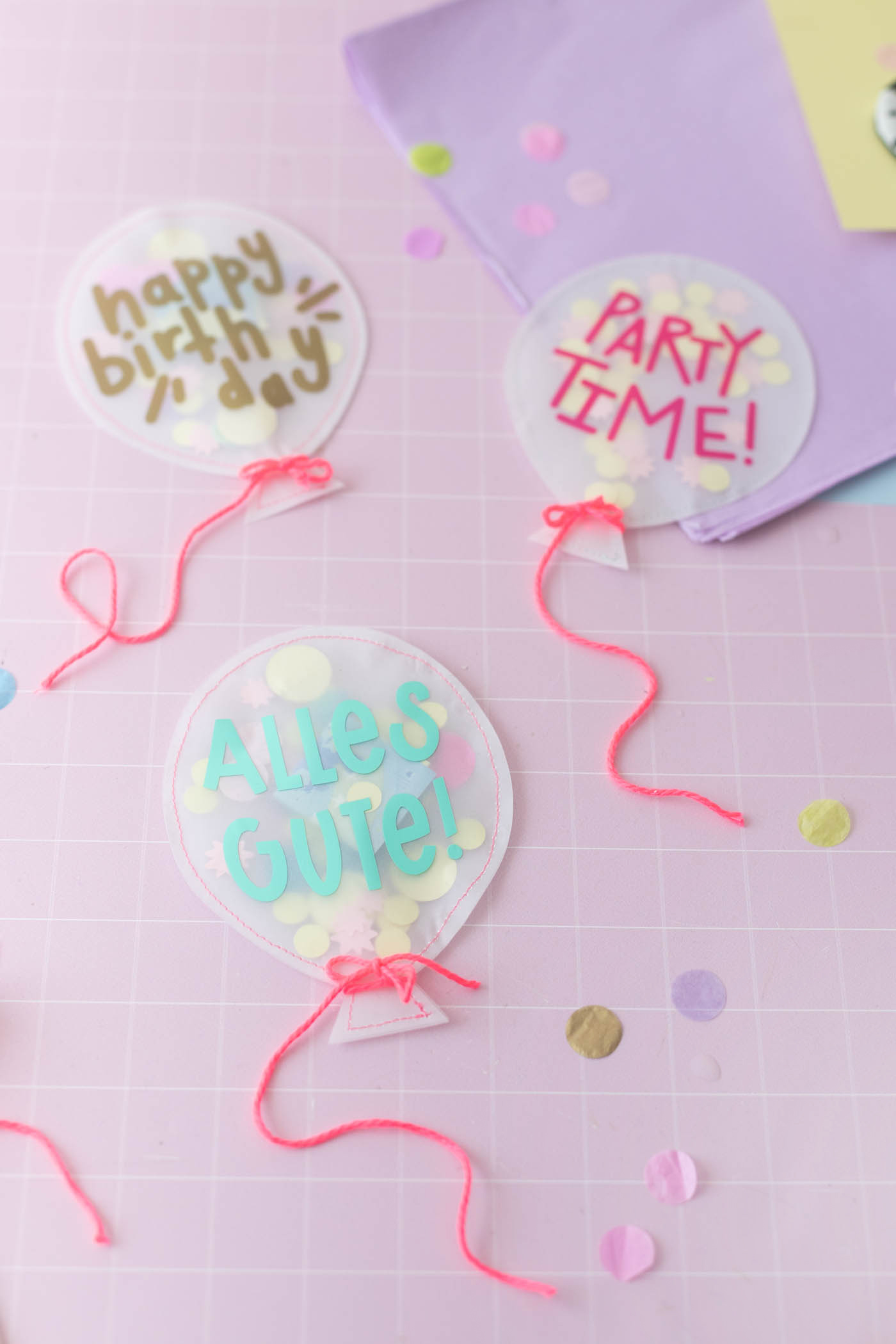 Mit dem Cricut Joy habe ich für mein Projekt zum Thema „Lass uns Feiern“ Pappe, Transparentpapier und Vinyl geschnitten – daraus ist eine Idee für ein originelles Geldgeschenk entstanden: kleine Luftballons aus Transparentpapier, in denen sich ein Geldschein versteckt. Das macht doch gleich viel mehr her als ein langweiliges Geld-Kuvert. 🙂