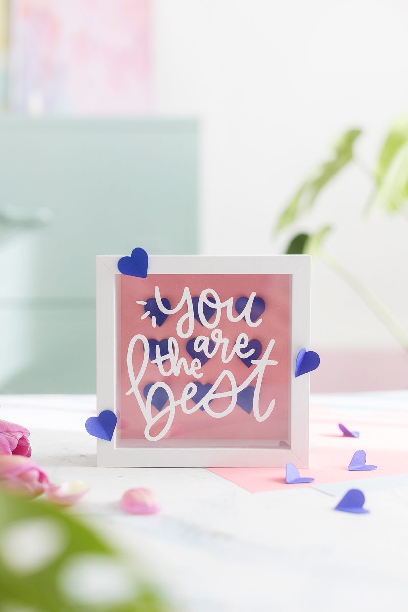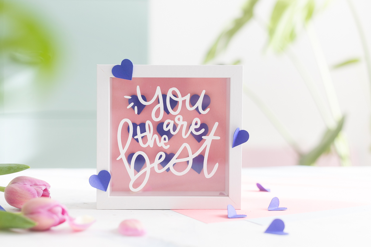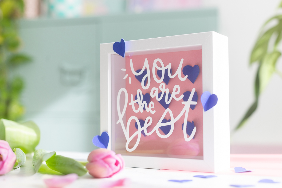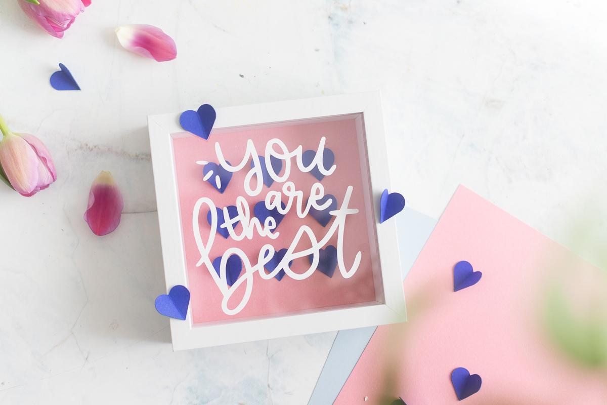 Zu unserem Mai-Thema habe ich eine Geschenkidee im Bilderrahmen umgesetzt – für den nächsten Geburtstag, für Muttertag oder einfach so, denn es braucht ja nicht immer einen Anlass, um jemandem zu sagen: „You’re the best!“
