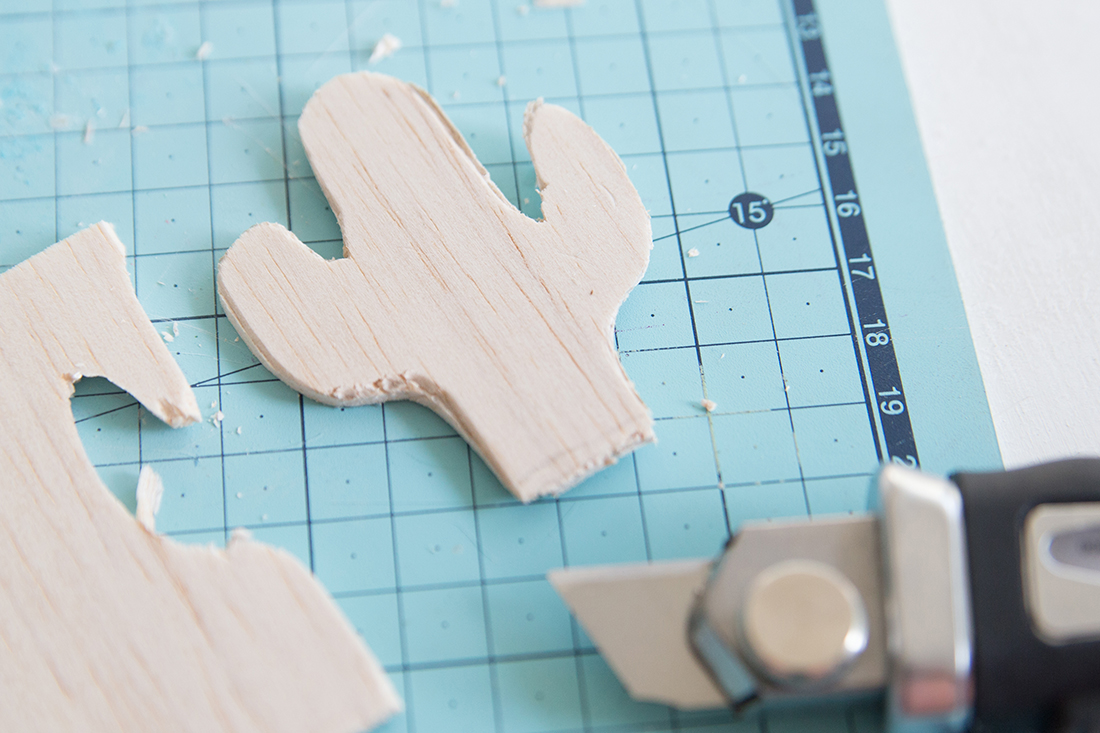 2. Nimm den Cutter zur Hand und schneide die Kaktus-Silhouette vorsichtig aus.