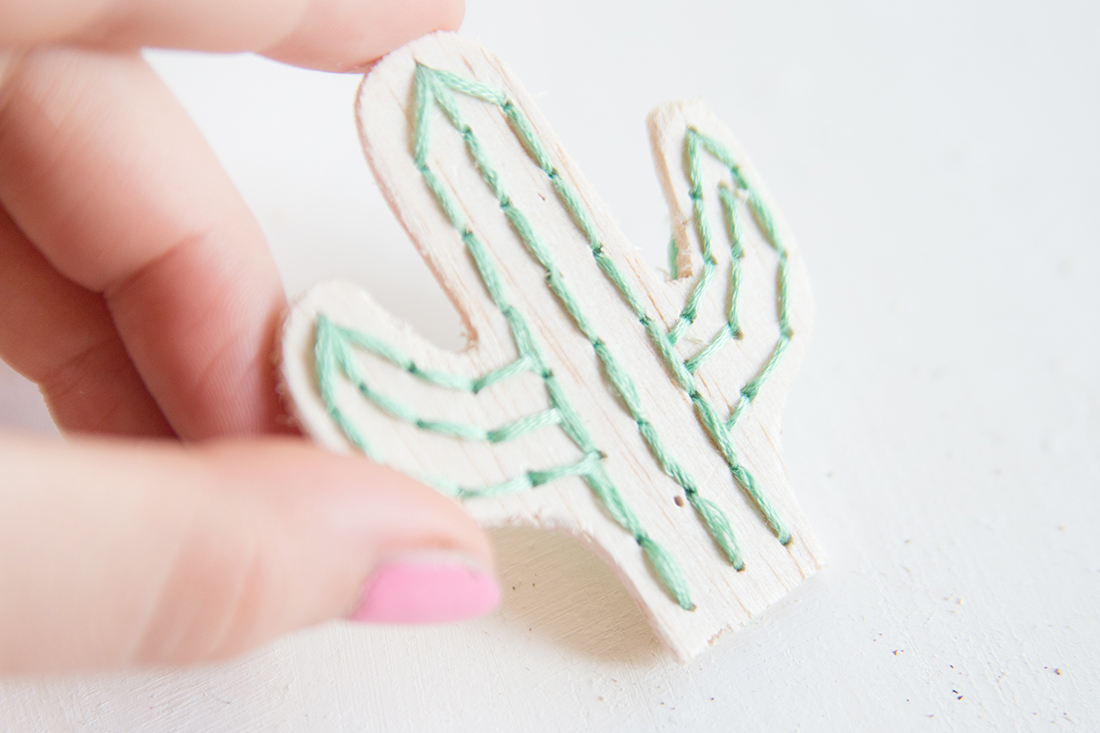 7. Weiter geht es mit den Kaktus-Armen. Dafür stichst du einfach mit der Nadel am Ende des Armes ein und wiederholst die Schritte von oben.