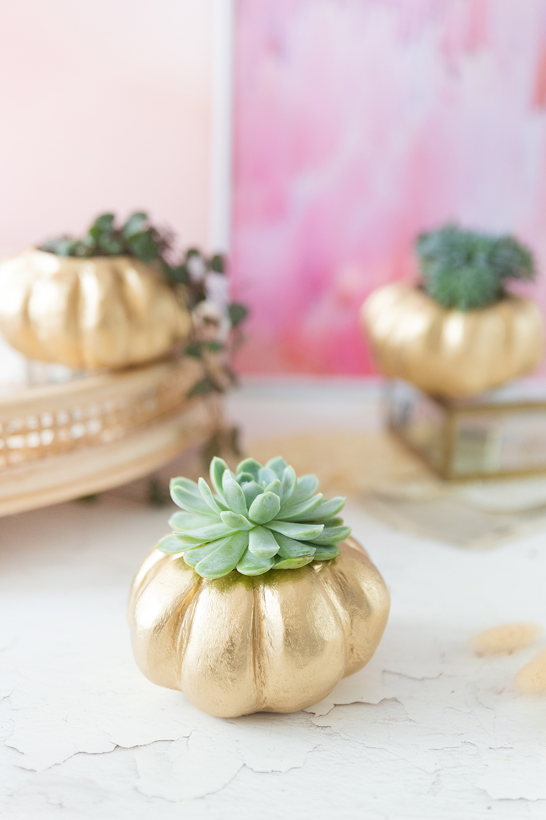 Am schönsten sieht es aus, wenn du gleich mehrere DIY Kürbis-Pflanztöpfe aus Modelliermasse bastelst, und sie zusammen arrangierst. Ich mag den edlen Look total gerne und freu mich, dass die Kürbis-Pflanztöpfe diesmal auch wirklich den ganzen Herbst halten, weil sie aus Modelliermasse sind – und nur so aussehen wie Kürbisse.