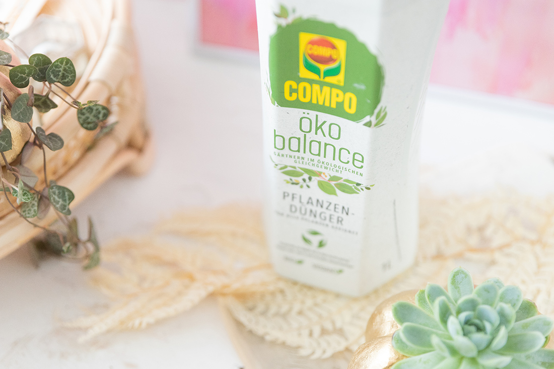 Damit deine Pflänzchen auch schön bleiben und genügend Nährstoffe bekommen, solltest du auch einen Dünger verwenden. Ich nutze den COMPO Öko Balance Pflanzendünger. Dieser wird einfach entsprechend der Dosierungsangabe ins Gießwasser gegeben, so verteilt er sich gleichmäßig in der Erde.