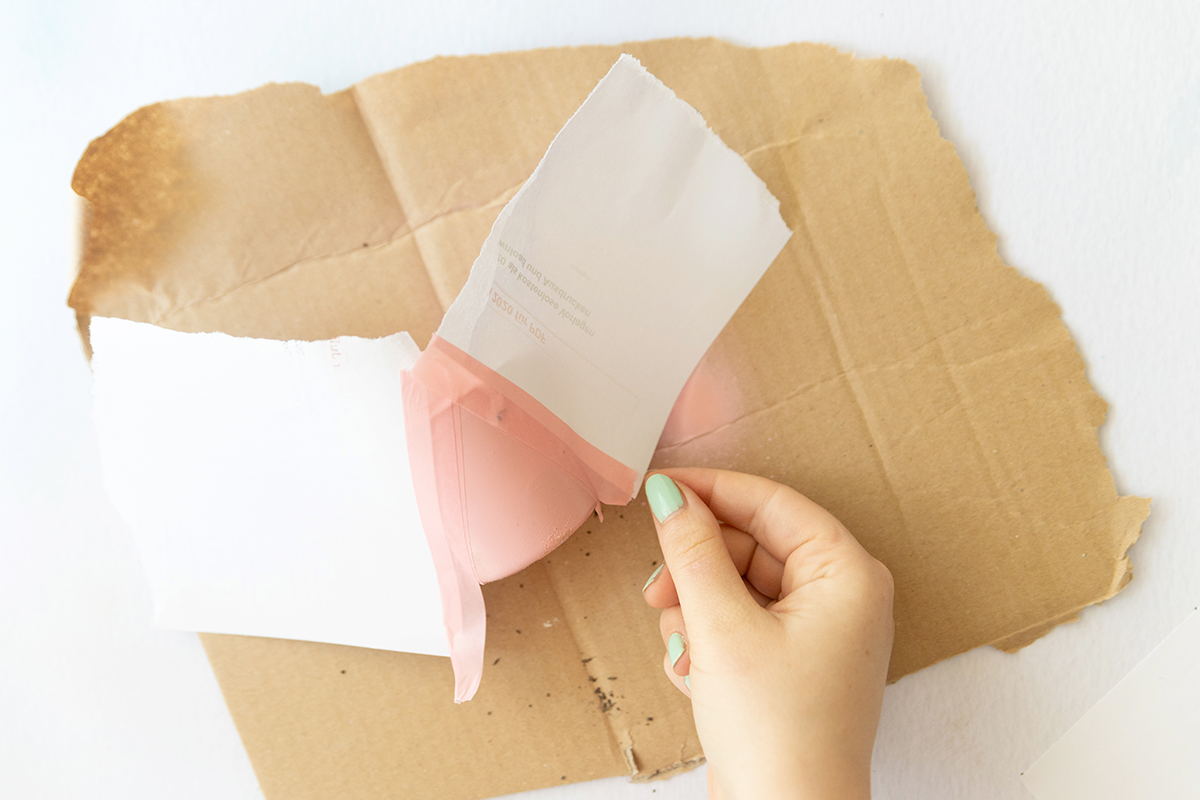 3. Nimm nun zwei Stücke Papier und klebe damit den Rest des Pflanztopfes ab, sodass das Goldspray gleich wirklich nur am abgeklebten Dreieck ankommt.