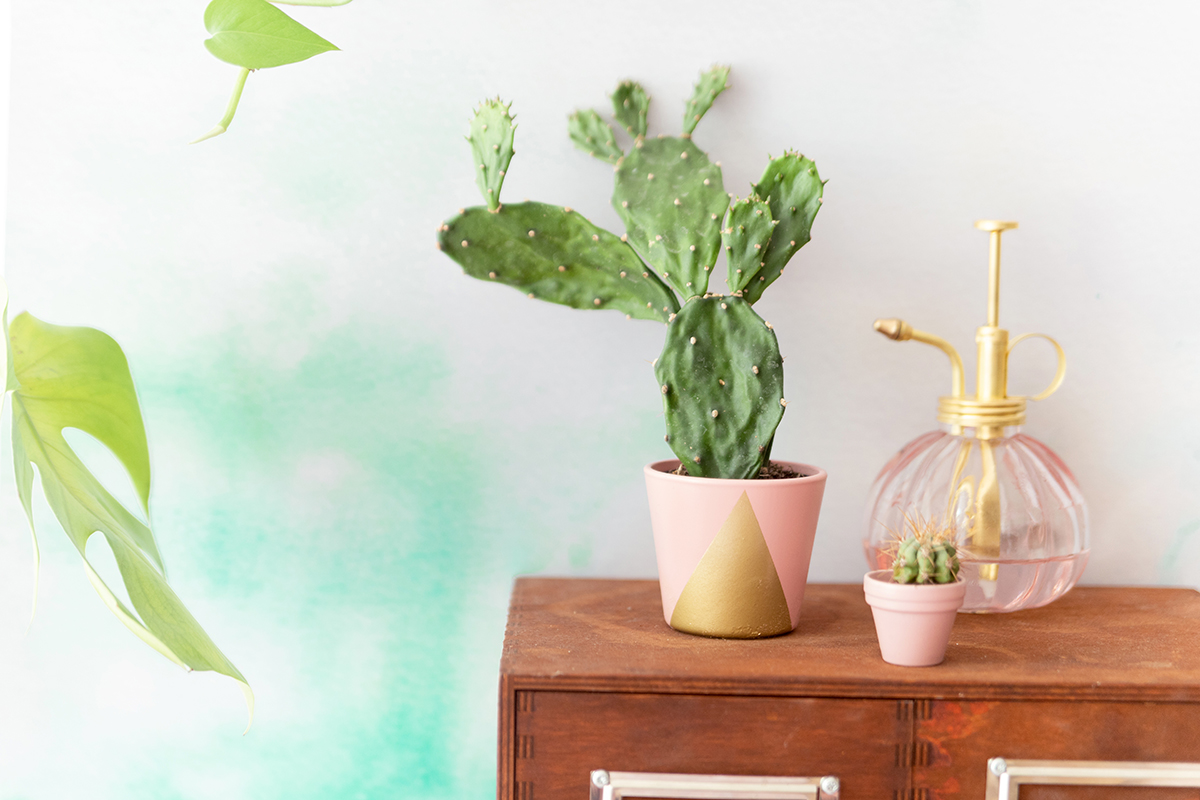 Und schon bist du mit deinem tollen DIY Mini Pflanztopf Upcycling fertig. Ich mag den Gold-Effekt mit dem Dreieck total gerne. Ich finde, das sieht voll edel aus. Du könntest natürlich auch direkt ein Set basteln – mit verschiedenen Dreiecken. Könnte ich mir super vorstellen!