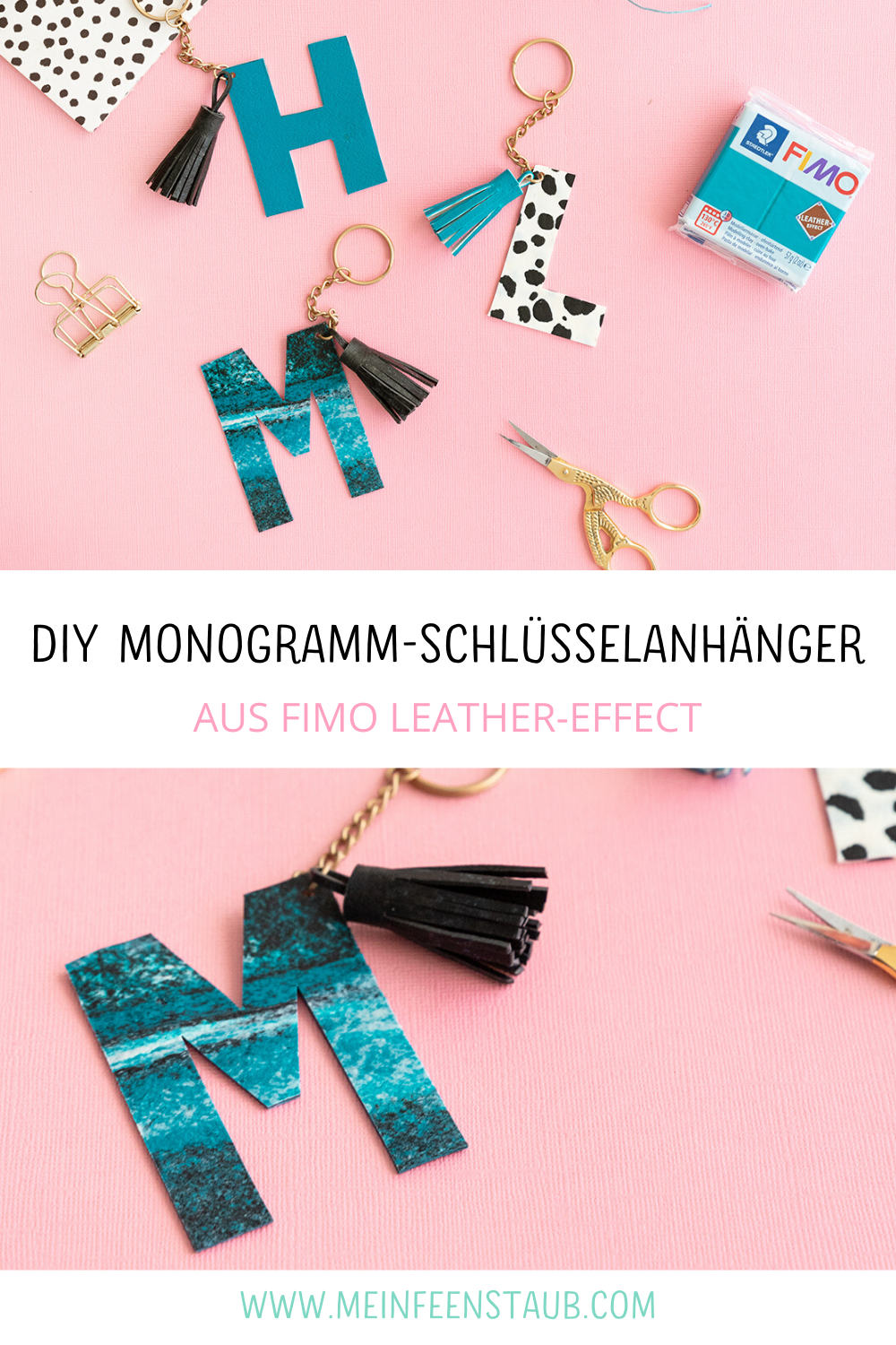 So machst du tolle DIY Monogramm-Schlüsselanhänger aus FIMO leather-effect selbst