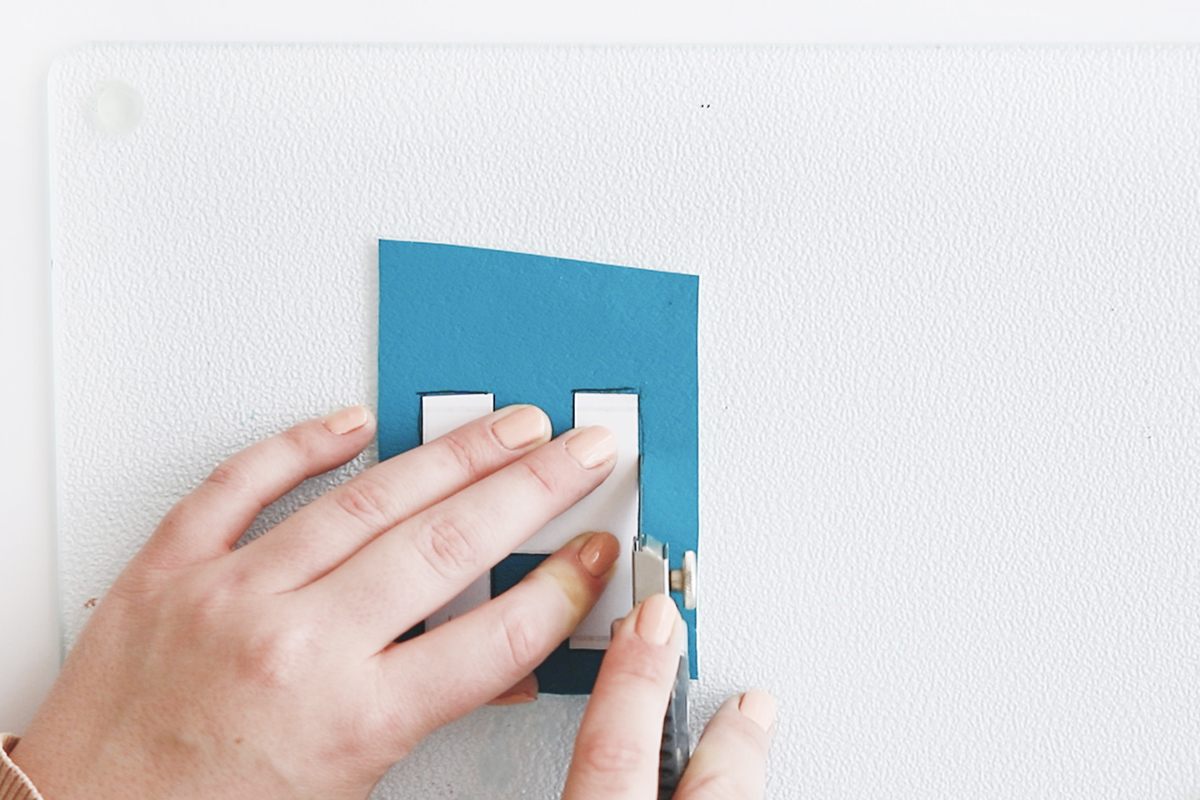 Nun machst du mit der Lochzange ein Loch in die Ecke des Buchstabens.