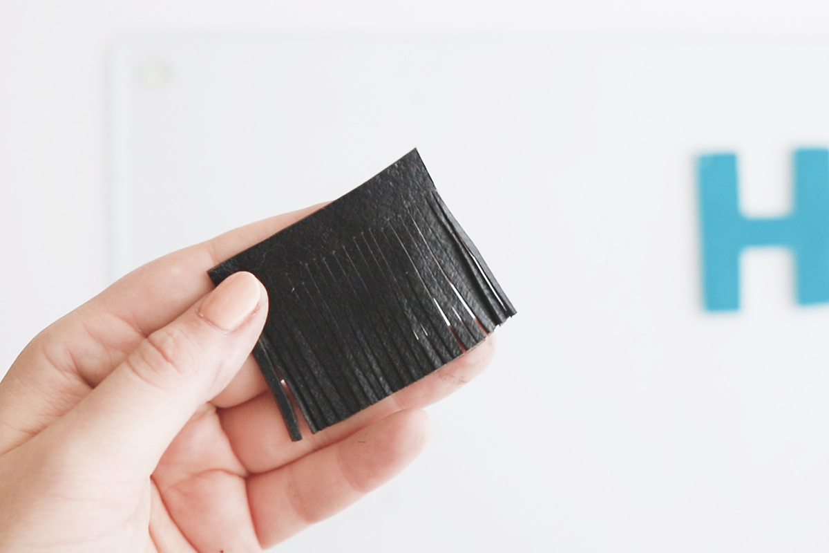Ein Rechteck für die Quaste ausschneiden und im Abstand von 0,3 mm einschneiden.