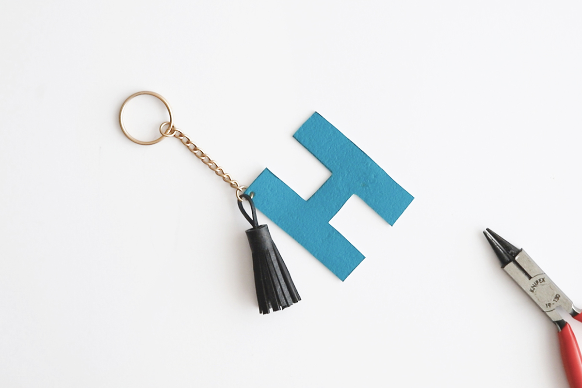 Nun kannst du Quaste und Buchstaben mit der Schmuckzange zusammenfügen – yay!
