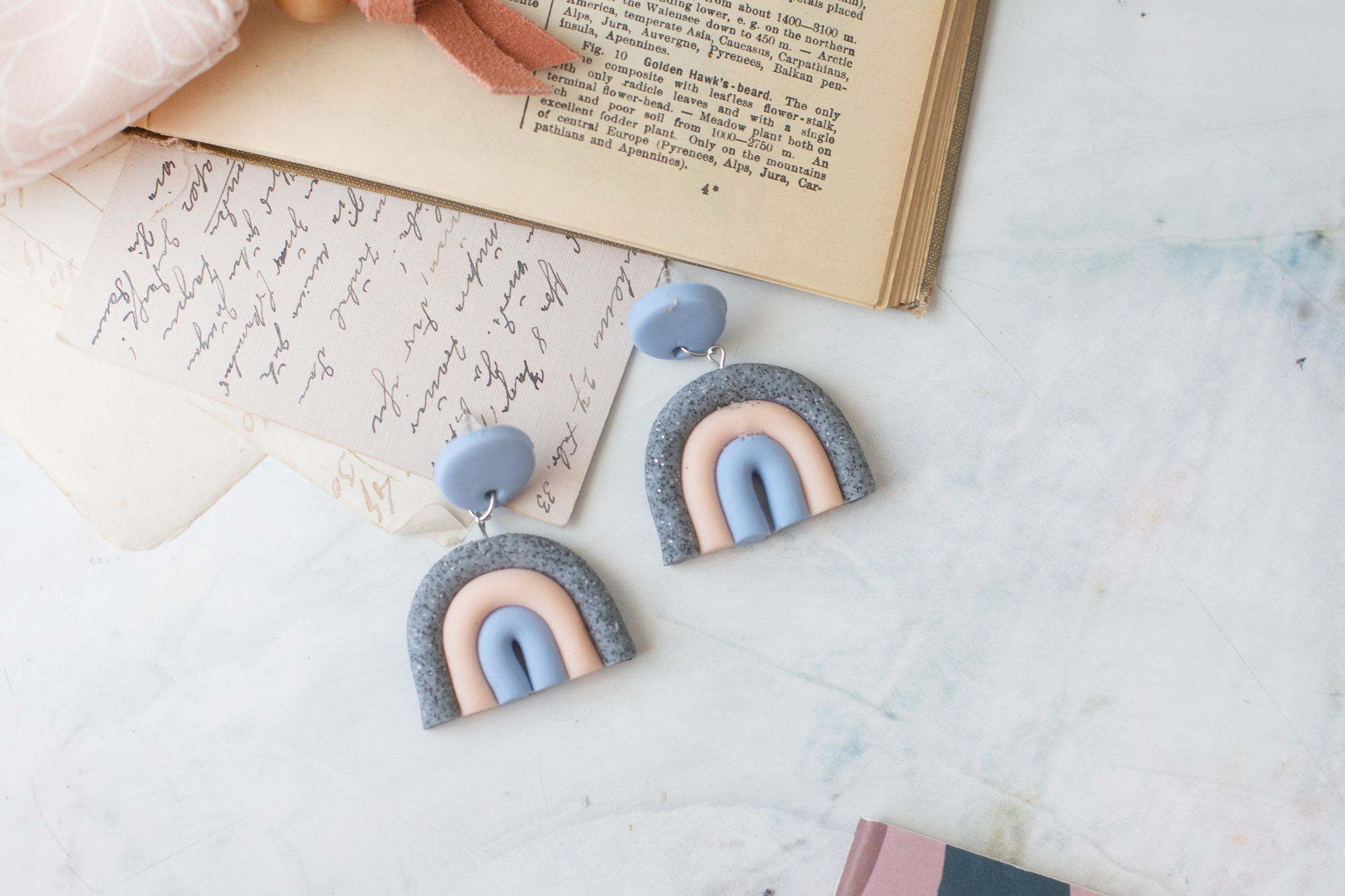 Für die Regenbogen-Ohrringe aus FIMO habe ich FIMO soft in rosa, hellblau und granit kombiniert. Ich finde die Kombi total schick und modern – und durch die Regenbogen-Optik sehen die Ohrringe schön verspielt aus.
