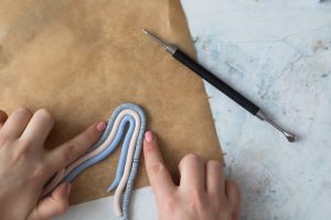 Theoretisch kann man die FIMO-Stränge für diese Idee auch von Hand rollen. Wenn du aber willst, dass die Stränge wirklich gleichmäßig werden, empfehle ich den FIMO Extruder sehr.