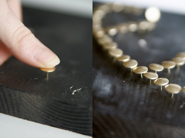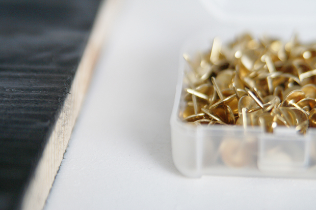 How does the author suggest planning and preparing the design before inserting the thumbtacks into the wood?