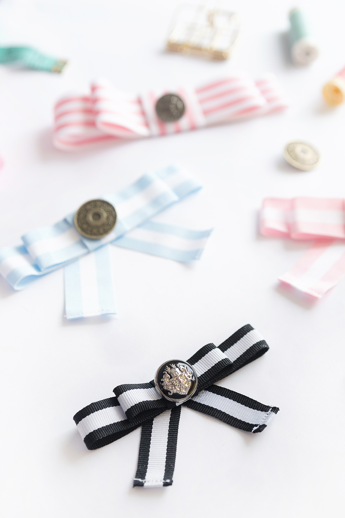 Außerdem könnt ihr hier toll einzelne Knöpfe, die ihr noch habt, verwenden, die richtig schön auf der DIY Schleifen-Brosche in Szene gesetzt werden!