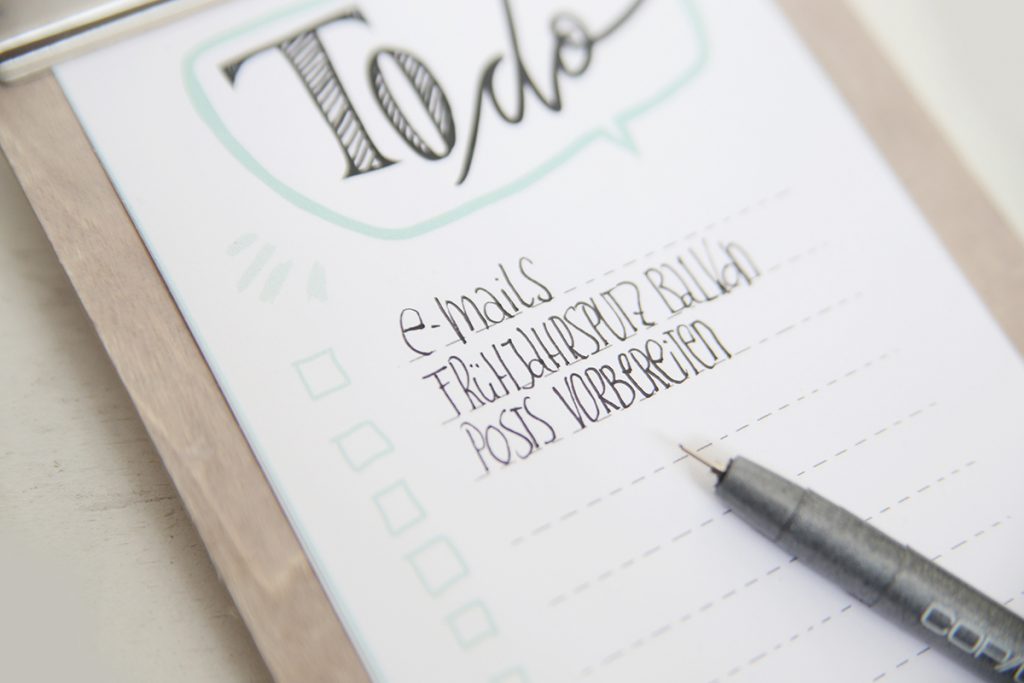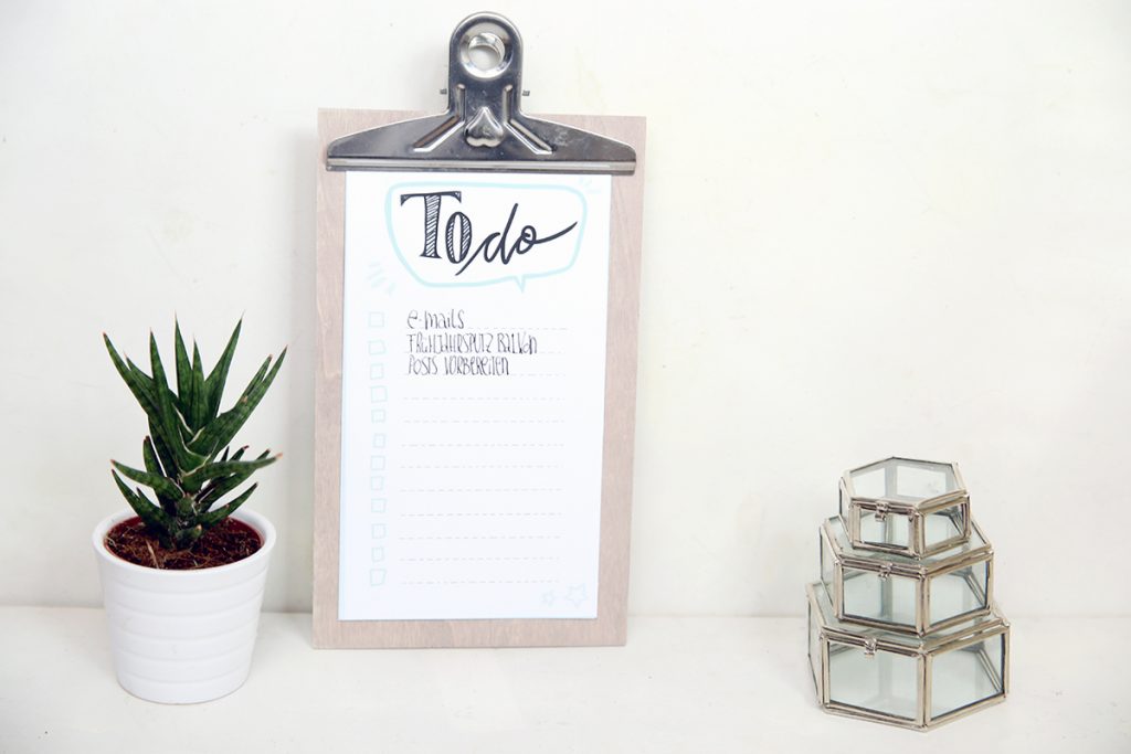 Oh ja so eine To Do List ist toll. Dasselbe schöne Klemmbrett habe ich auch und was ist drauf? Genau meine To Do Liste 😉