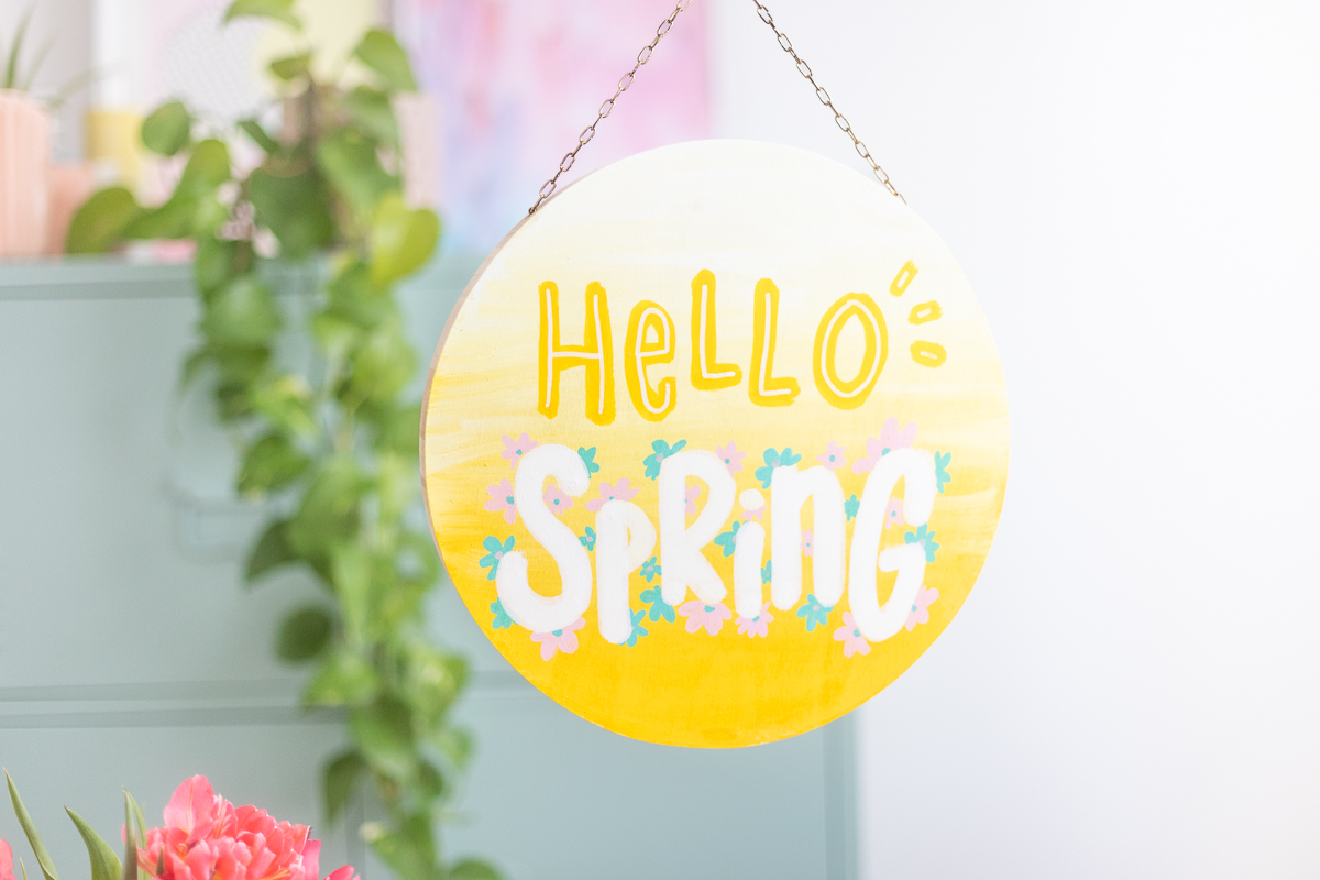 Fertig ist dein wunderschönes Frühlingsschild. Du kannst es an die Haustür hängen oder als Deko-Element für dein Zuhause an die Wand hängen.
