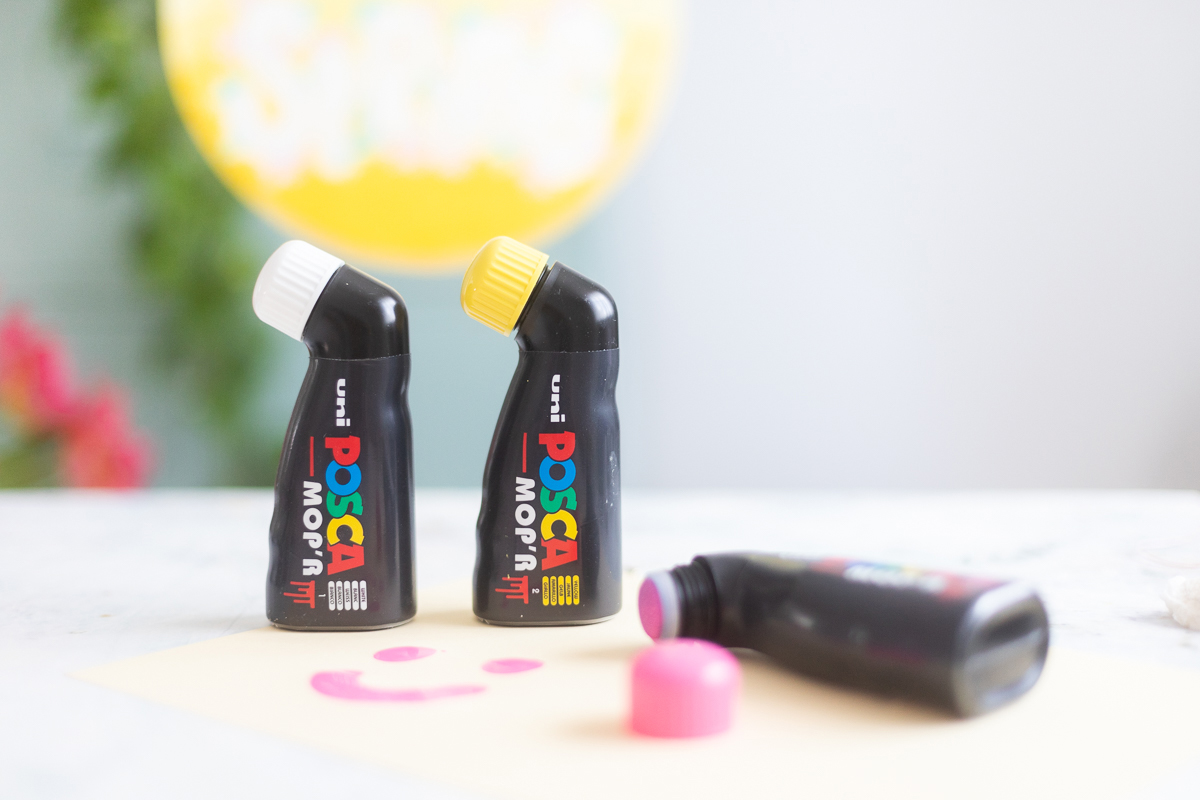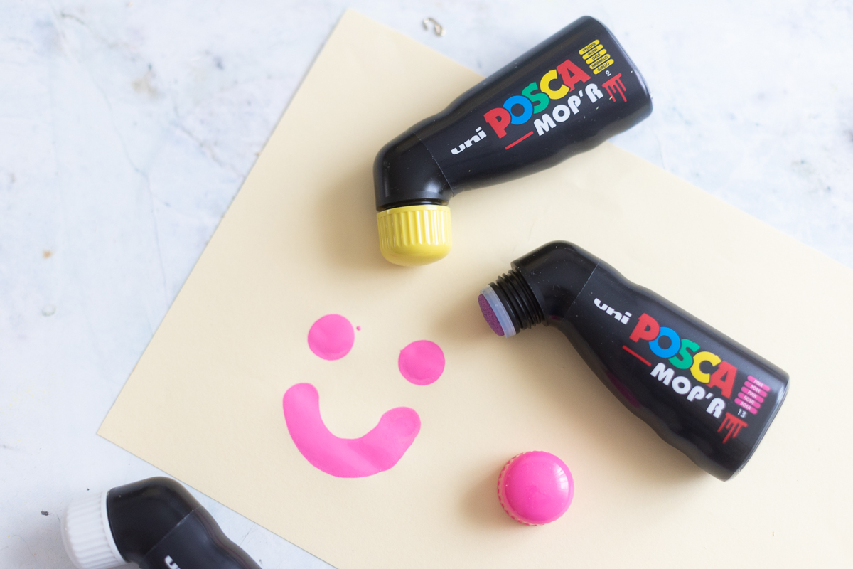 Neu im POSCA-Sortiment ist der MOP’R. Das ist ein richtig cooles neues Produkt: nämlich ein Marker mit einer riesigen Stempelspitze mit einem Farbauftrag von 3 – 19mm Breite.