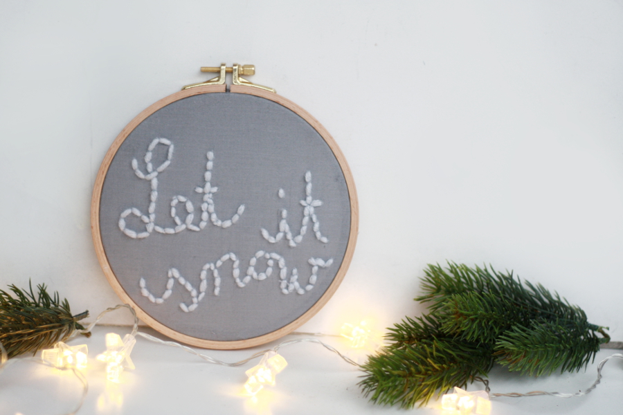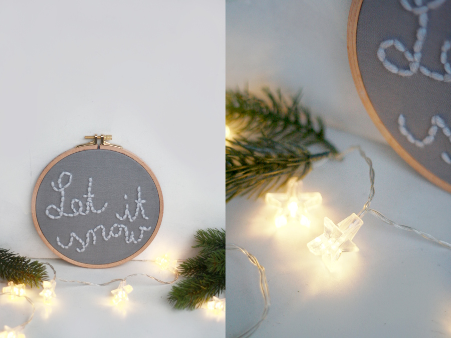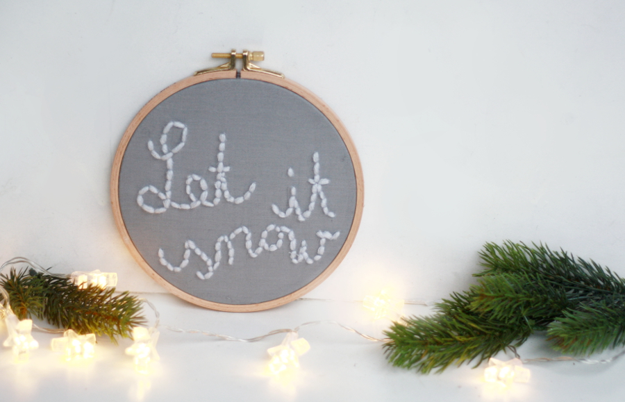 Noch lieber als hübsche Weihnachtsdeko mag ich winterliche Dekoration, die auch im Januar nicht zu kitschig wirkt und die man immer noch stehen lassen kann. Und heute hab ich so einen Allrounder für euch, der auch im Januar und Februar (und März und April, wenn es an Ostern mal wieder schneit) auch noch super passt: Nämlich einen coolen und einfach zu machenden Stickrahmen mit Schriftzug.