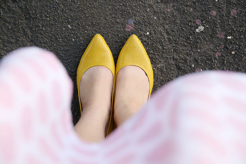 Einfach bezaubernd. Tolles Kleid, schönes Outfit – und ich habe eine Schwäche für (senf)gelbe Schuhe.