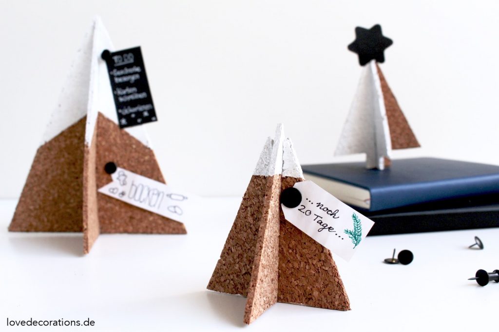 Passend zur Weihnachts- bzw. Winterzeit habe ich diese kleinen Tannenbaum-Pinnwände aus Kork gebastelt.