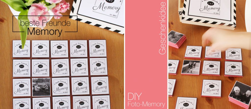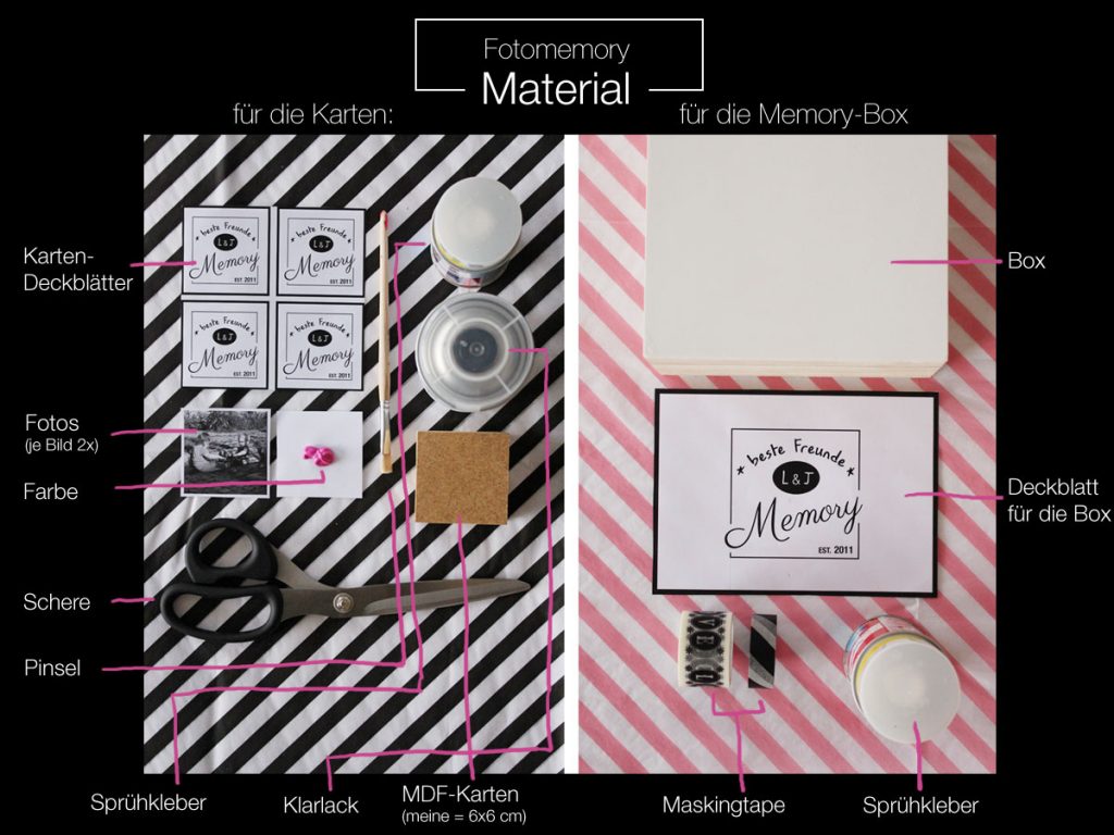 Für alle, die jetzt auch gerne mit MDF, Sprühkleber und vielen Bildchen die grauen Zellen und das Herz in Schwung halten wollen, hier mein DIY für ein (beste Freunde) Foto-Memory: