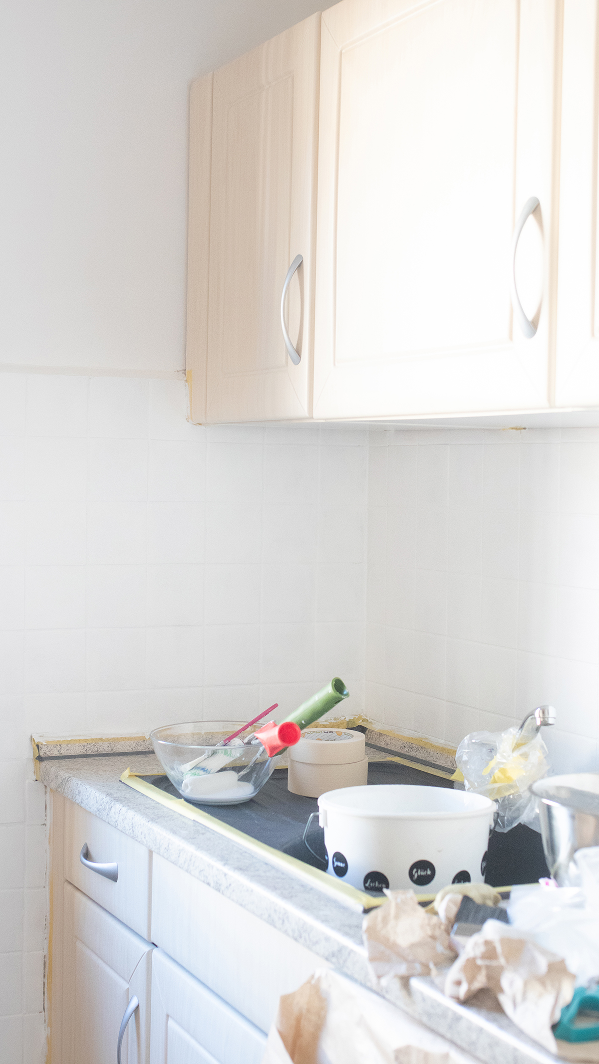 Wichtiger Hinweis: Wenn du in einer Mietwohnung oder einem Haus zur Miete wohnst, solltest du das mit dem/der Vermieter*in abklären. Meine Vermieterin hat zugestimmt, da die Küche ohnehin irgendwann mal raus soll. Also: Auf jeden Fall vorher klären!