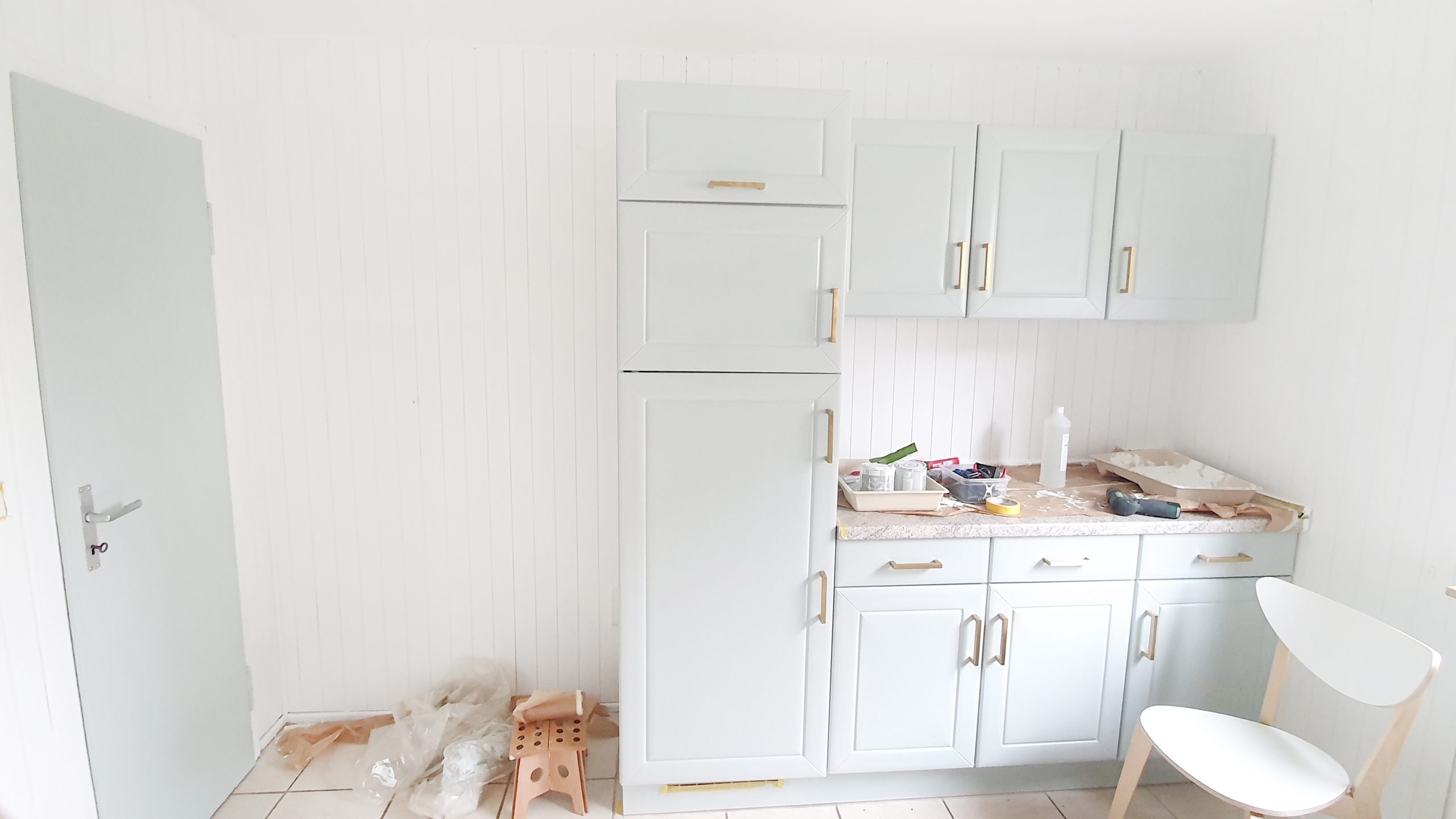 2. Küchen-Fronten mit Kreidefarbe in Mintgrün streichen