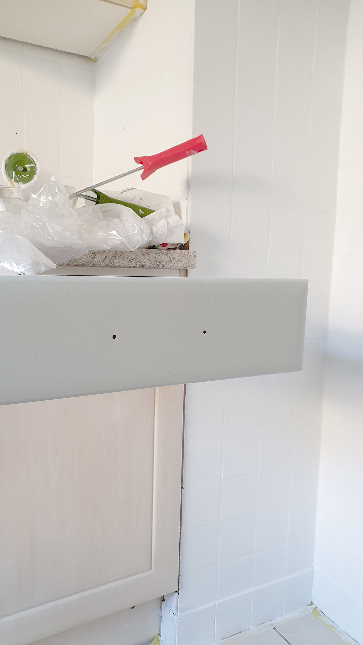 Die Fliesenfarbe ist im getrockneten Zustand nämlich auch abwischbar. Sehr praktisch!