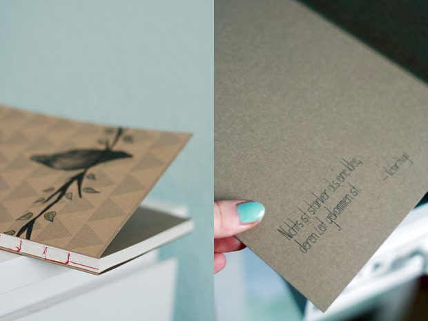 Ich glaube ich würde in dem Büchlein Zitate und Ideen für DIY sammeln oder es auch für To-Do-Listen nutzen. 🙂 Die Zeichnung mit der Taube gefällt mir auch super! 🙂