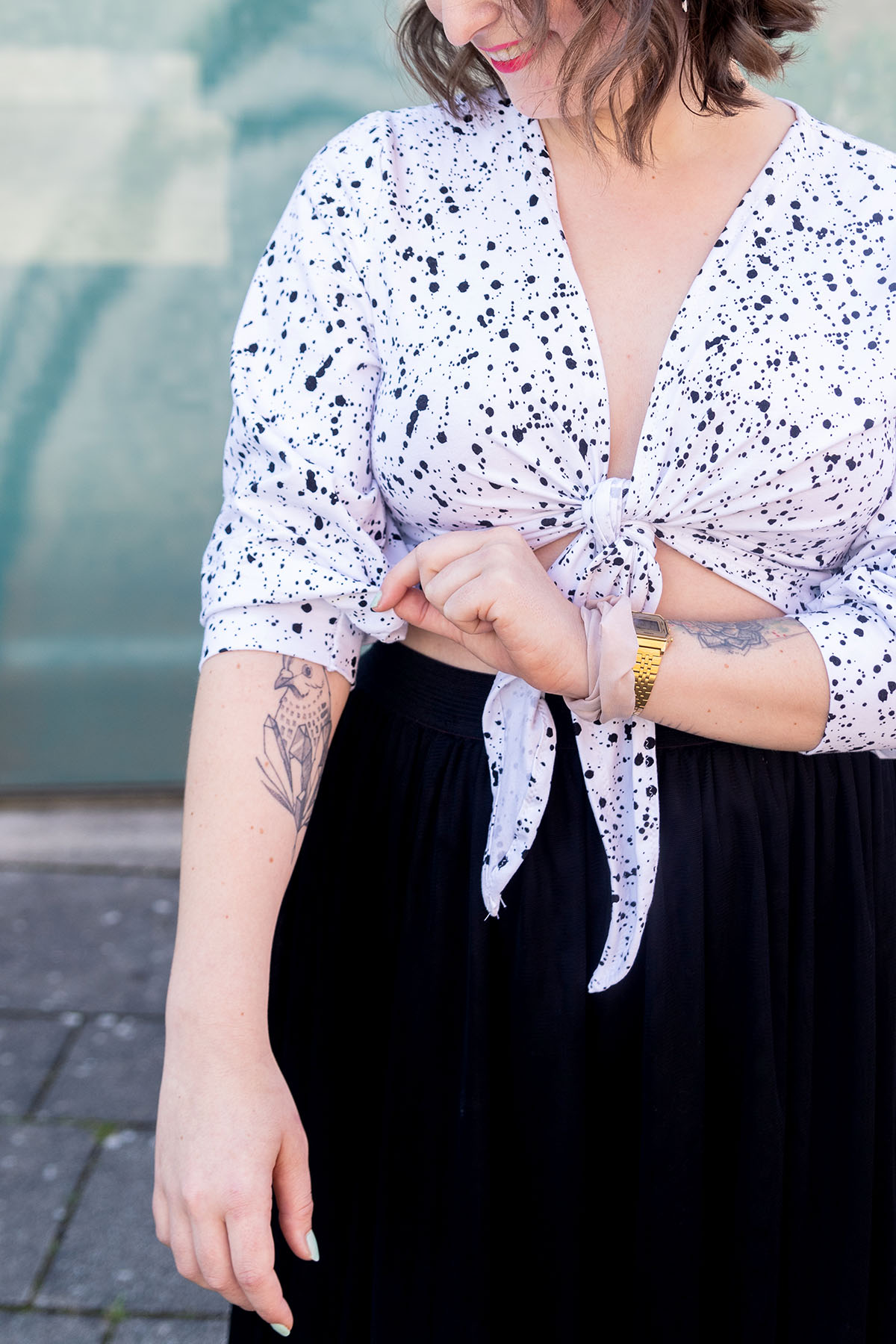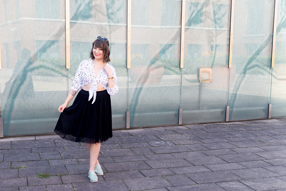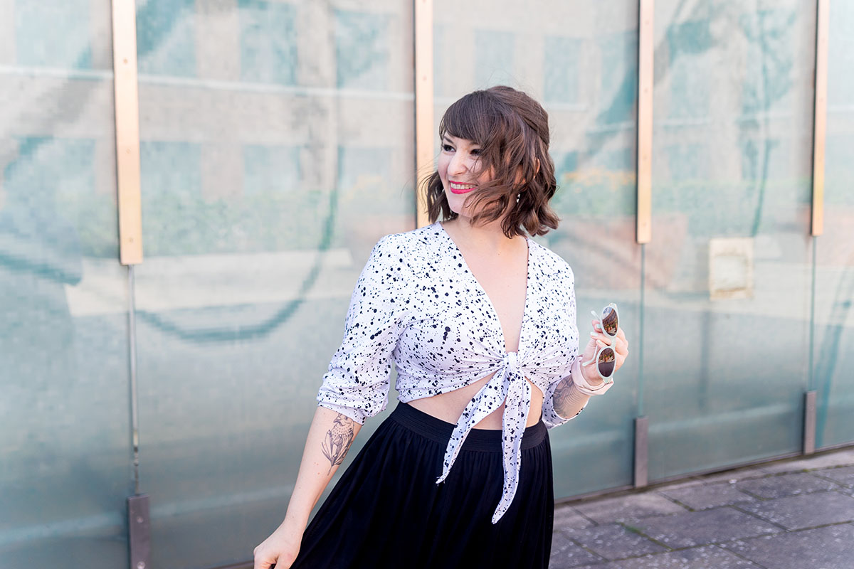 Das Schöne bei so einem Knotentop ist übrigens: Der Schnitt an sich muss nicht perfekt sitzen – das kann man wunderbar durch den Knoten einfach anpassen!