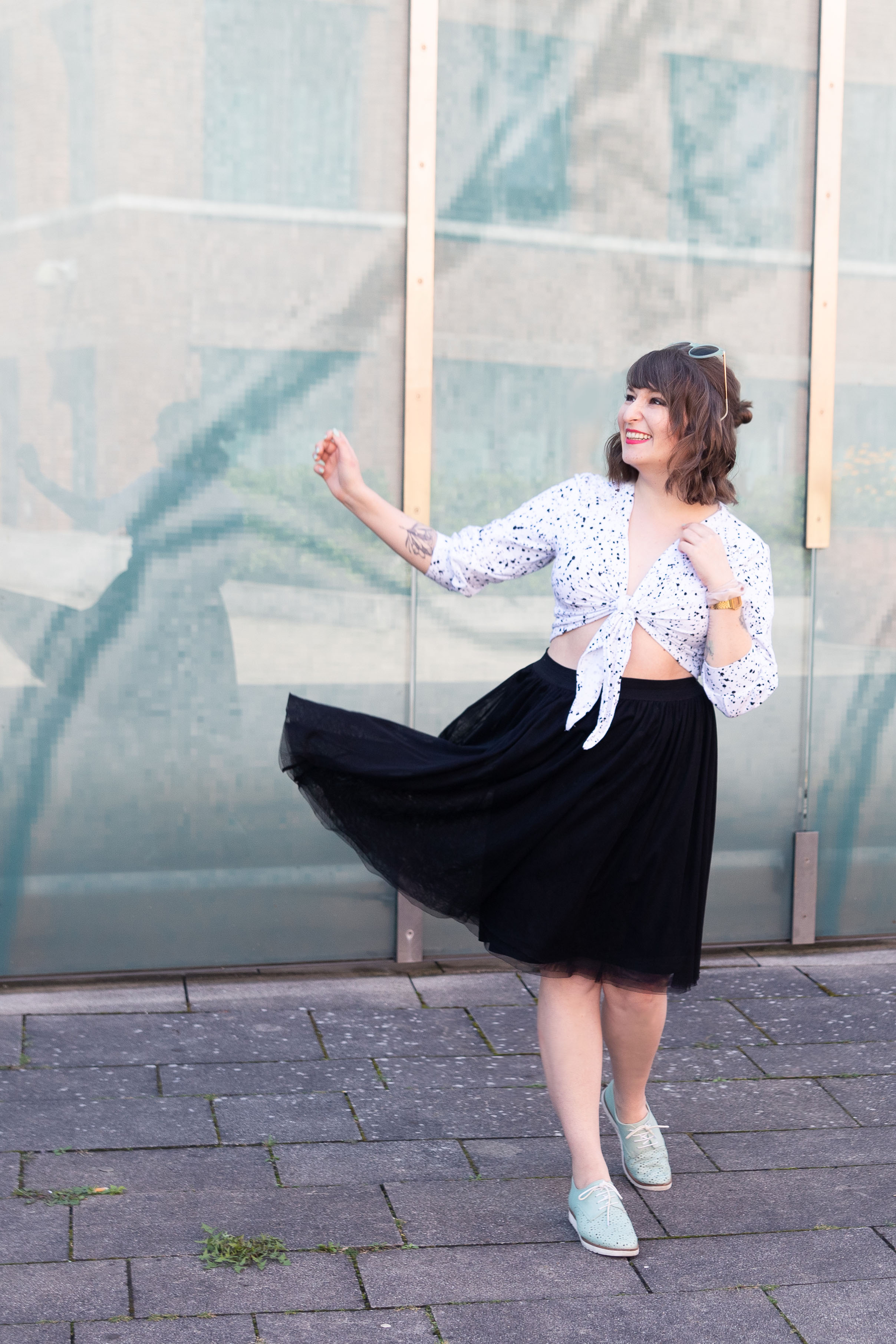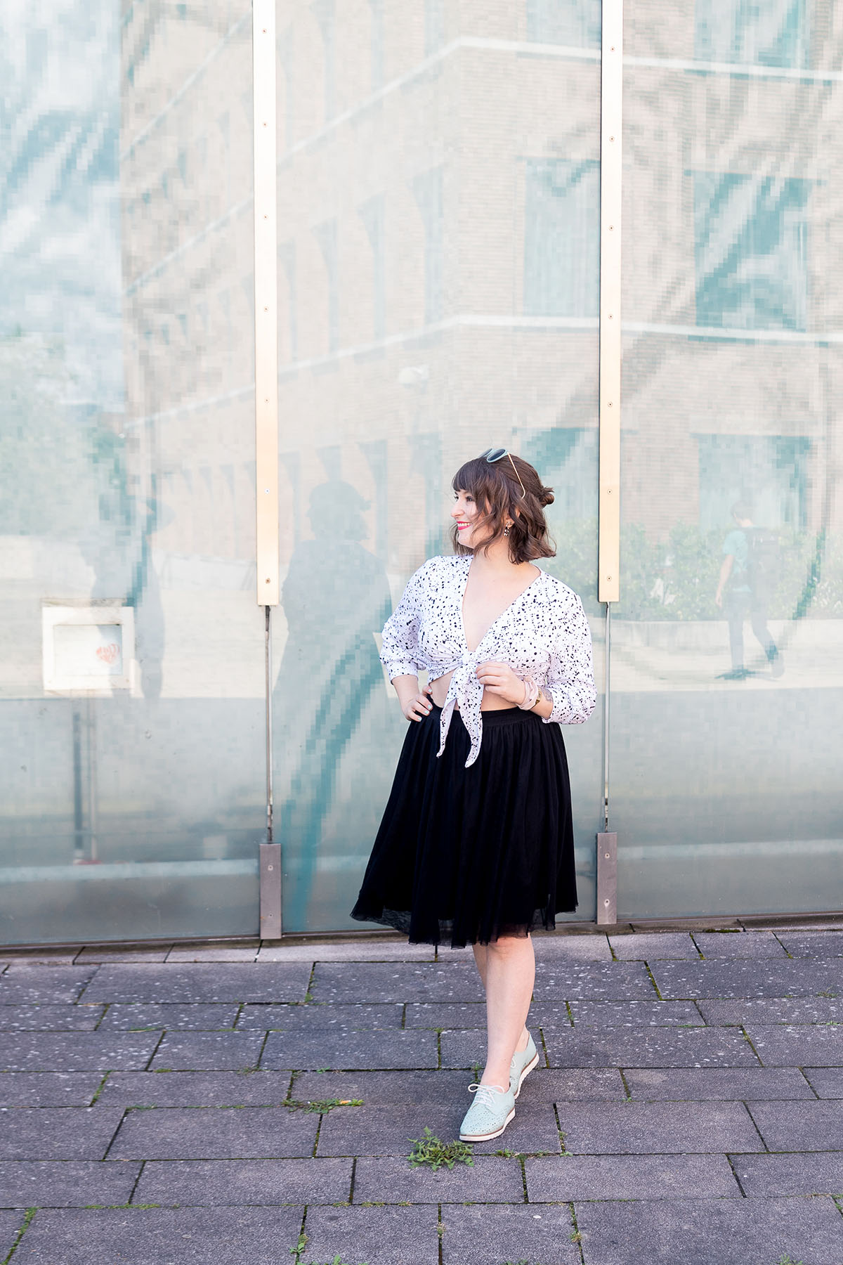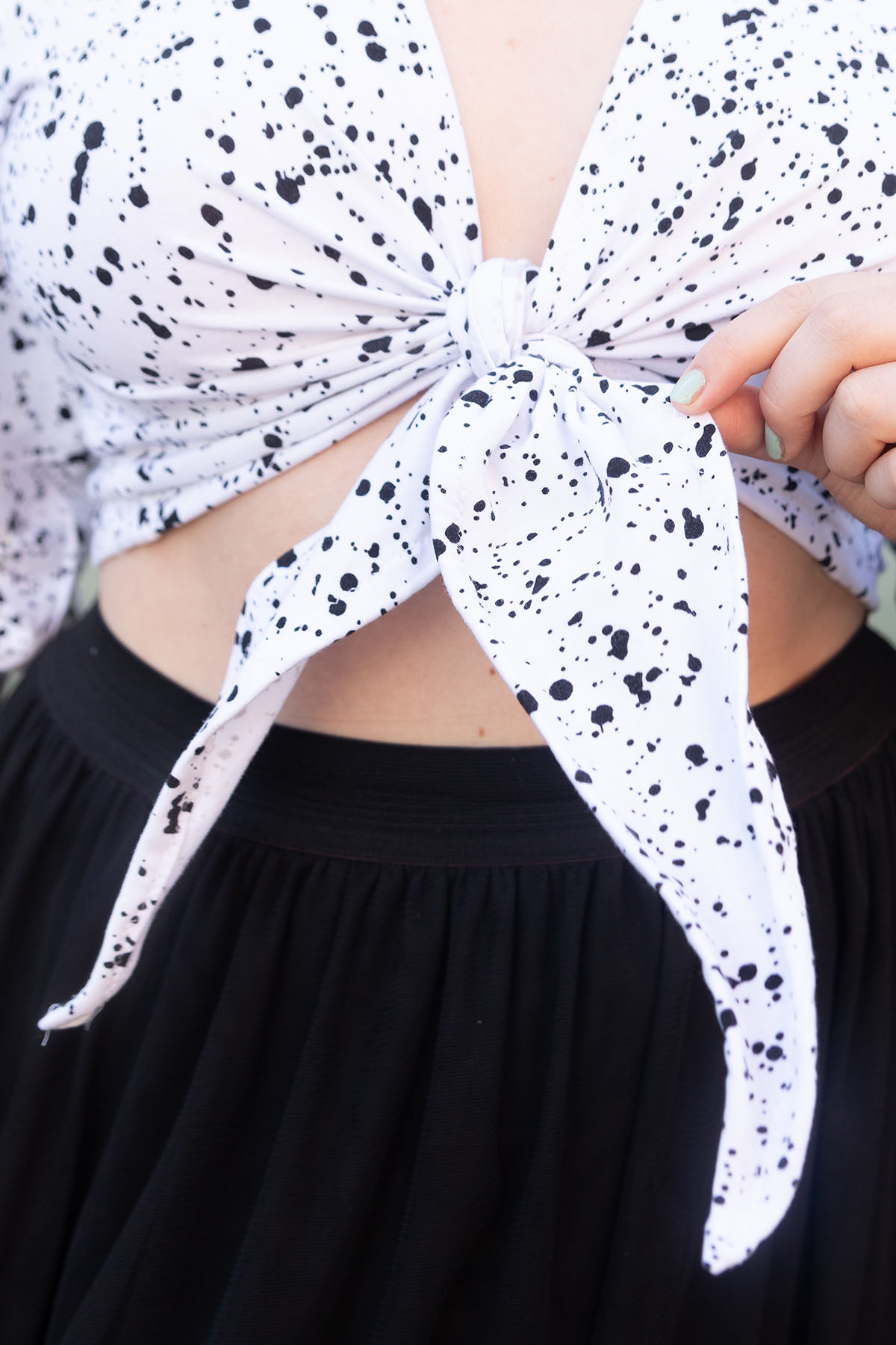 Das Schöne bei so einem Knotentop ist übrigens: Der Schnitt an sich muss nicht perfekt sitzen – das kann man wunderbar durch den Knoten einfach anpassen!