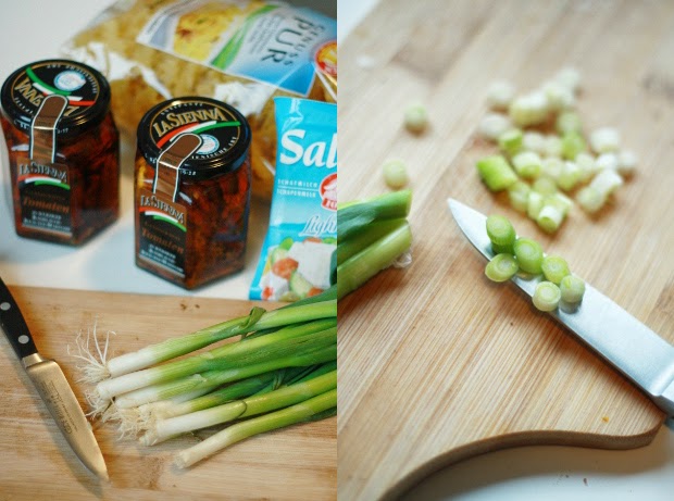 Ich selbst habe ein ähnliches Rezept, statt der Frühlingszwiebeln gibts bei mir noch angebratenen Speck oder würzige Salami dazu. Gerne auch noch ein paar Basilikumblätter 😉