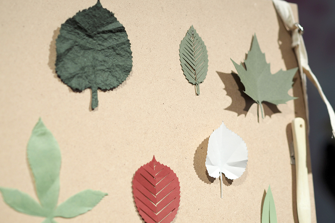 Die Farbpalette reicht von Rotbuche, Linde, Eiche und Salbei bis Wegwarte. Blätter von heimischen Bäumen werden in unterschiedlichen Farbschattierungen nachempfunden, aus Papier gefaltet oder zu Stickmotiven. Insekten tauchen ebenfalls immer wieder auf: Gestickt, als gestempeltes Motiv oder dreidimensional.