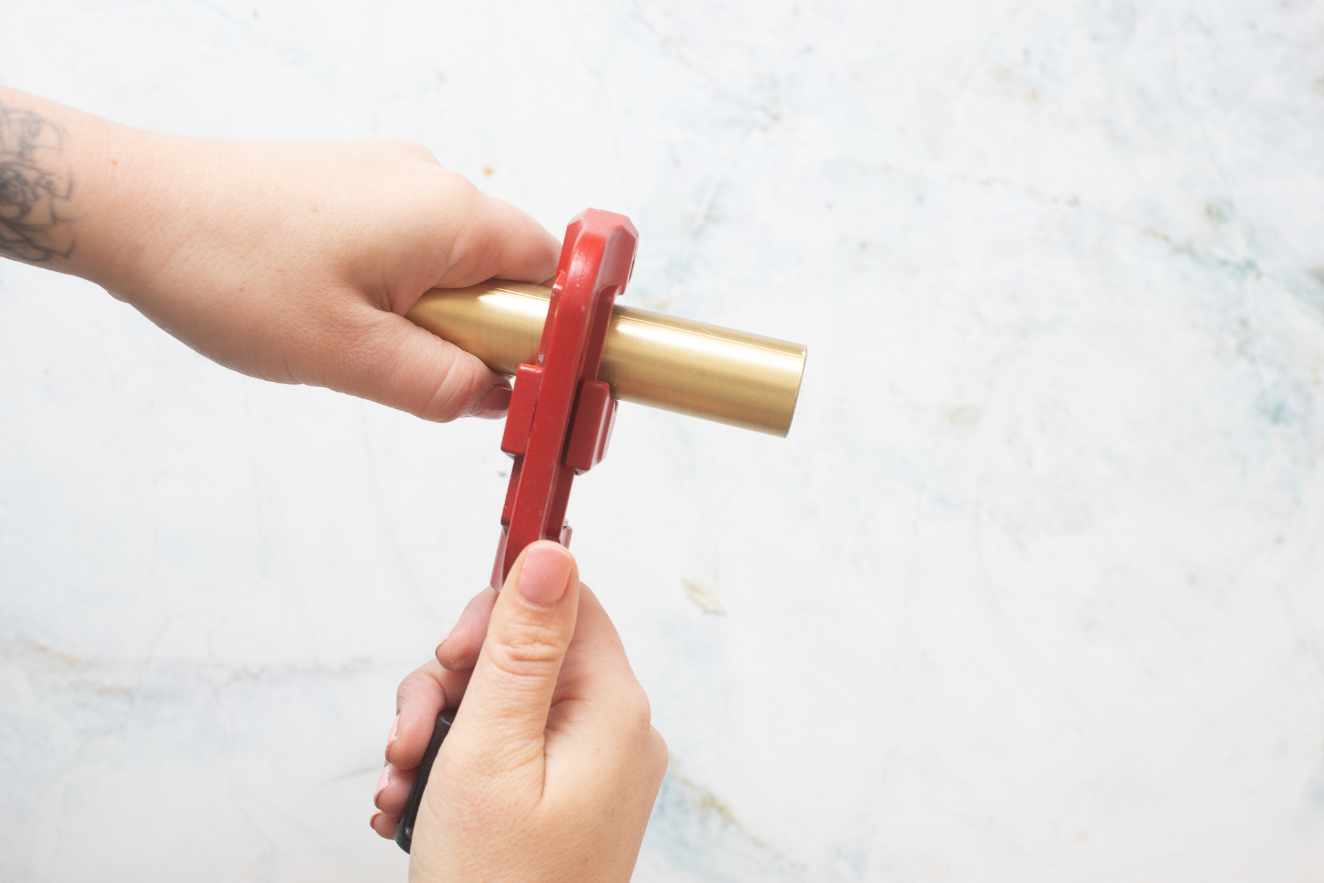 3. Nimm nun den Rohrschneider zur Hand und schneide die Gardinenstange so zu, wie du es für deinen Kerzenhalter benötigst.