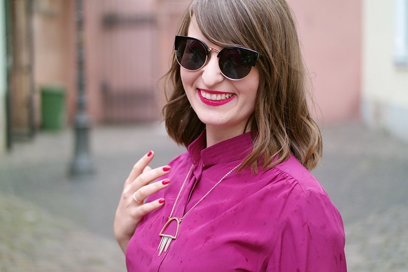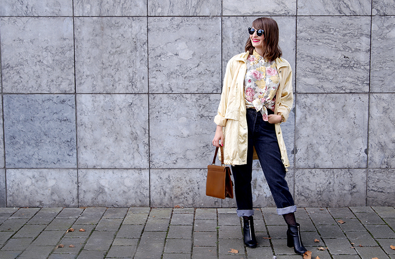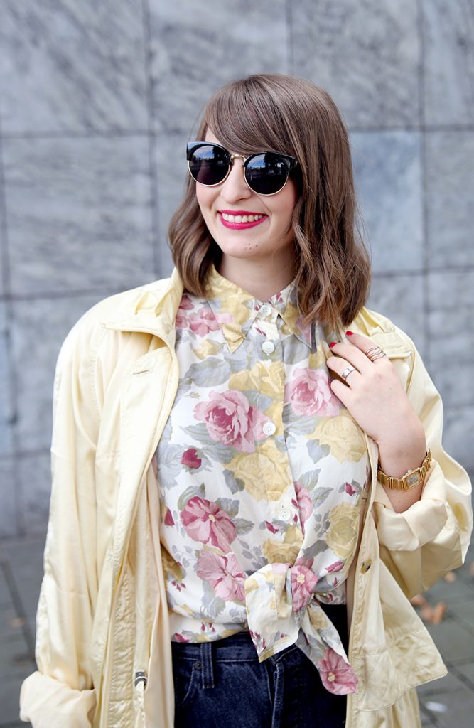 Outfit Nummer zwei ist sehr gelblastig. Und ich liebe es. Ich möchte es am liebsten von oben bis unten haben. Und ich glaube, dass ich demnächst mal bei Jana vorbeischauen muss und – wenn er noch da ist – den Mantel kaufen. Und die Bluse. Und die Hose, die so unfassbar gut saß, als wäre sie für mich geschneidert.