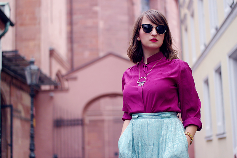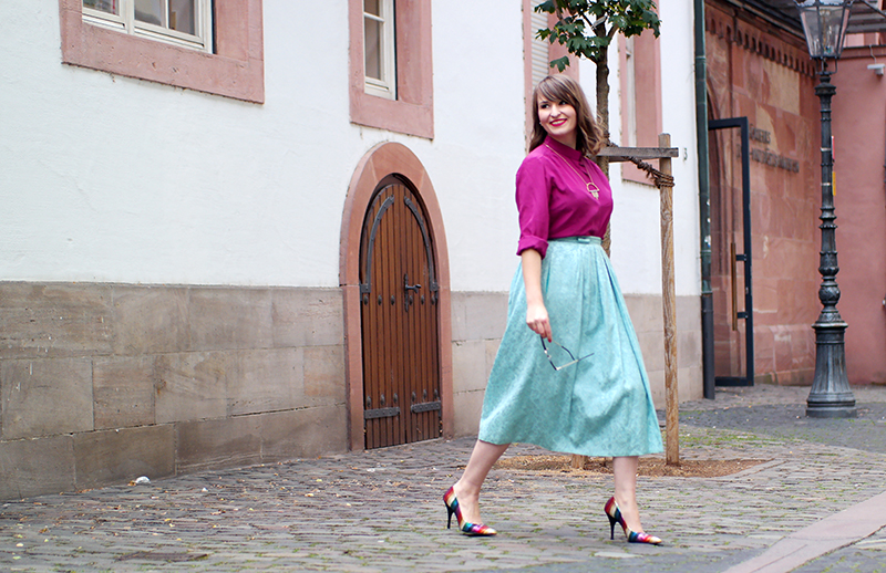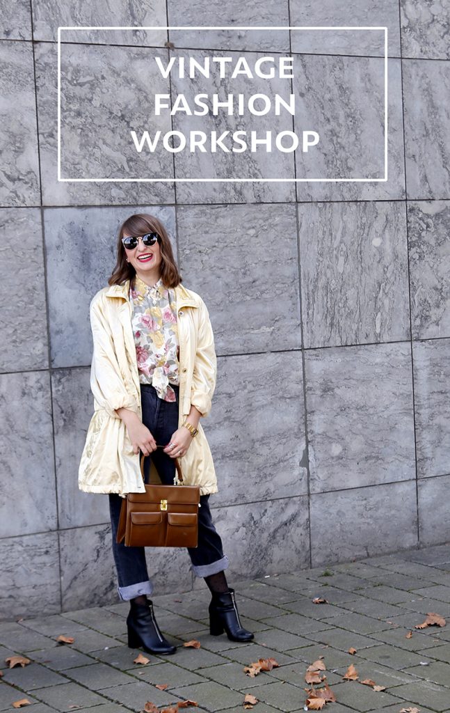 In meinem #DIYyourCloset-Post, in dem ich meine selbstgenähte Statement-Korktasche gezeigt hab, habe ich schon angekündigt: Nicht nur den tollen Tüllrock, den ich getragen hatte, durfte ich mir von Janablume-Vintage borgen – dabei sind noch zwei weitere Outfits entstanden, die wir fotografiert haben. An jenem Sonntag fand nämlich der phantastische #bloggereckchen-Vintage-Fashion-Workshop statt, den Janine, Sara und Consti (dreieckchen.de) organisiert haben.